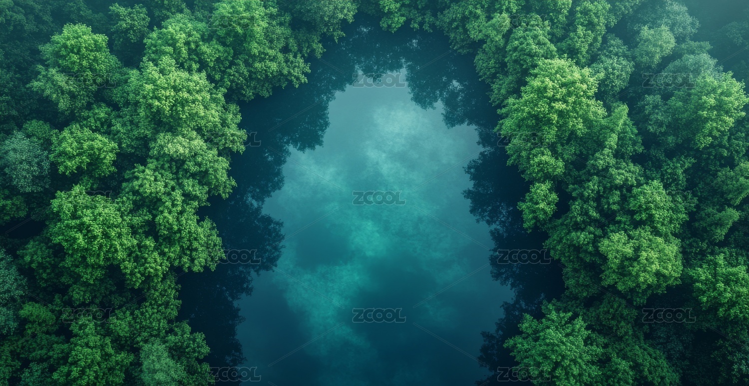 森林湖泊鸟瞰全景