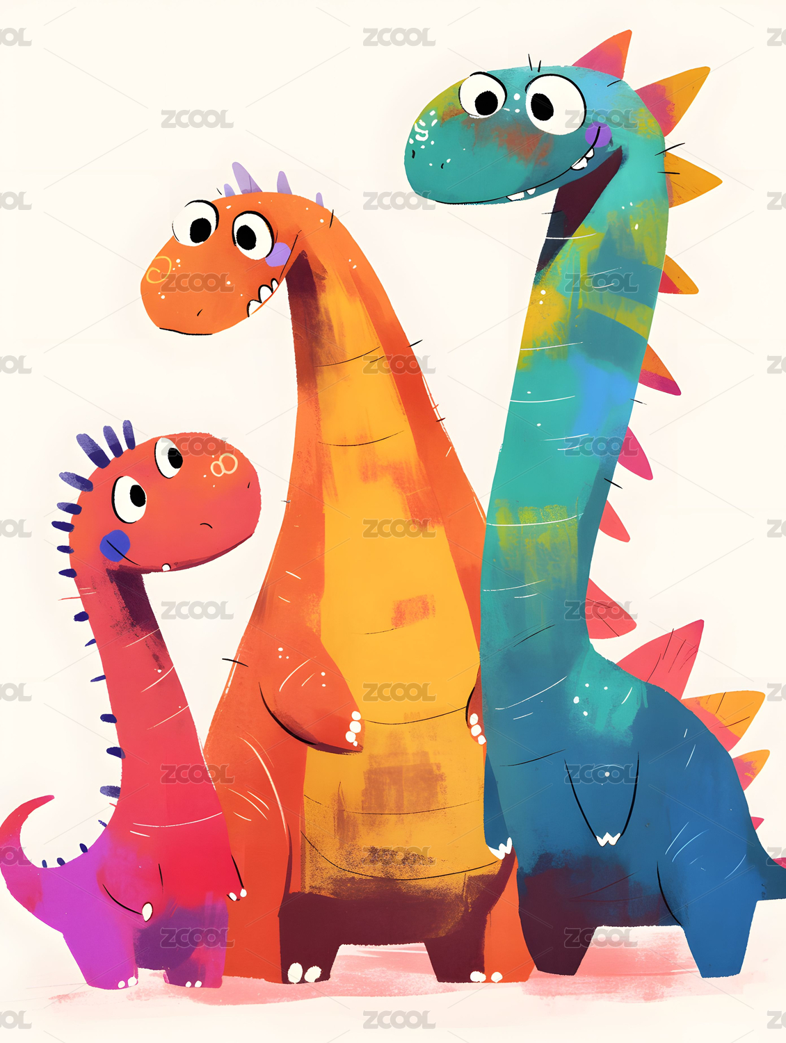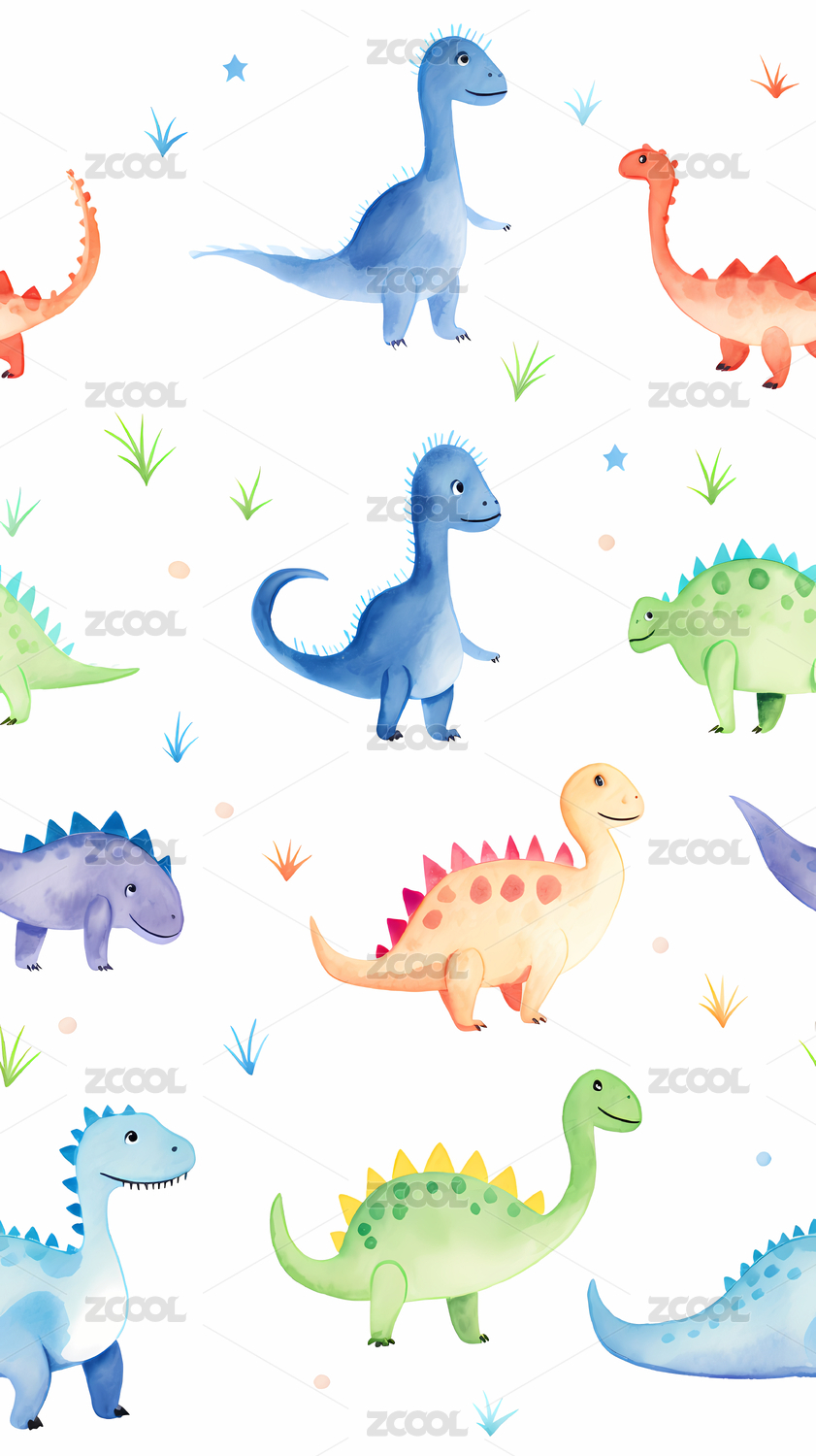 数码水彩幼儿风格恐龙图案装饰抽象图形海报