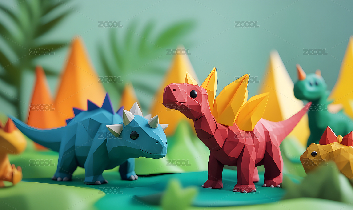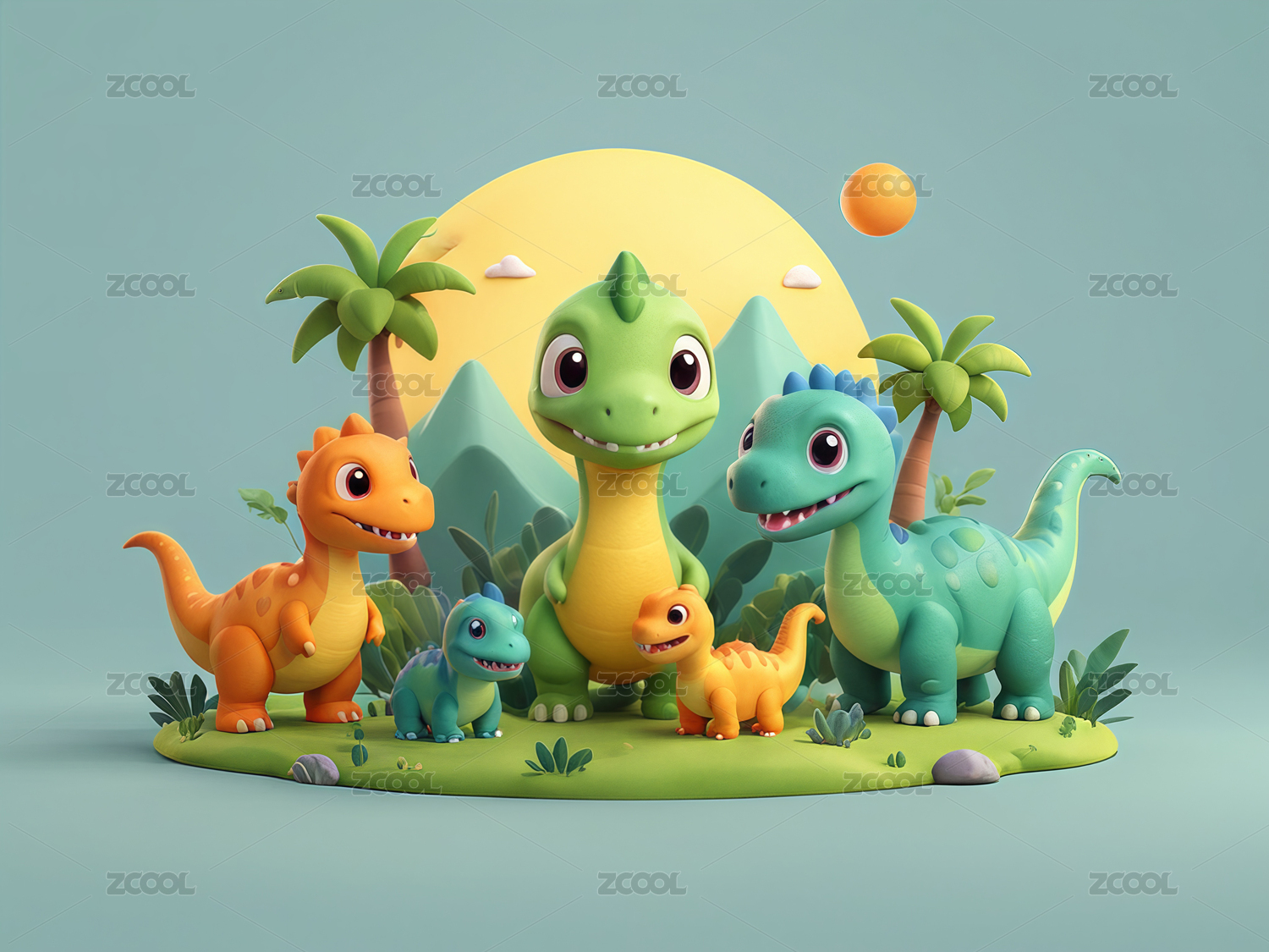 3D可爱恐龙插画六一儿童节卡通动物背景