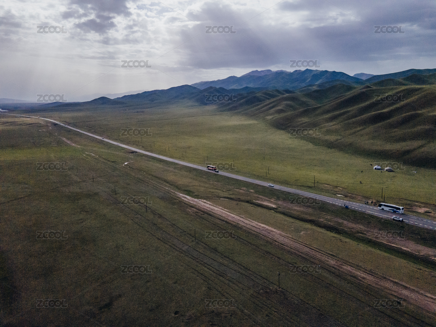绿色草原公路航拍