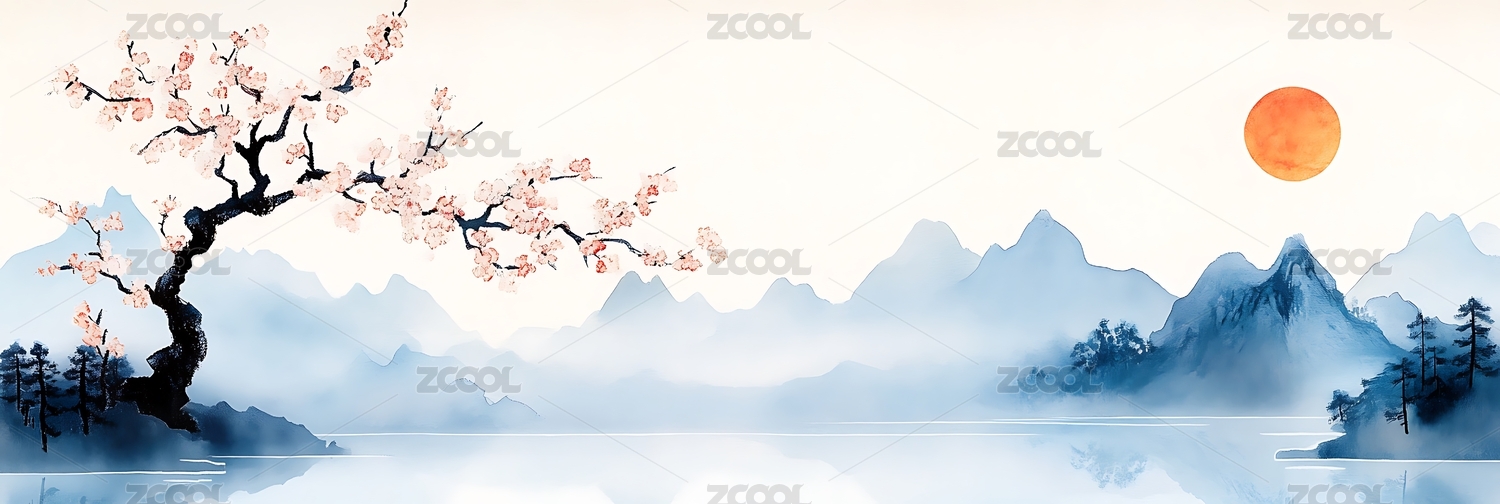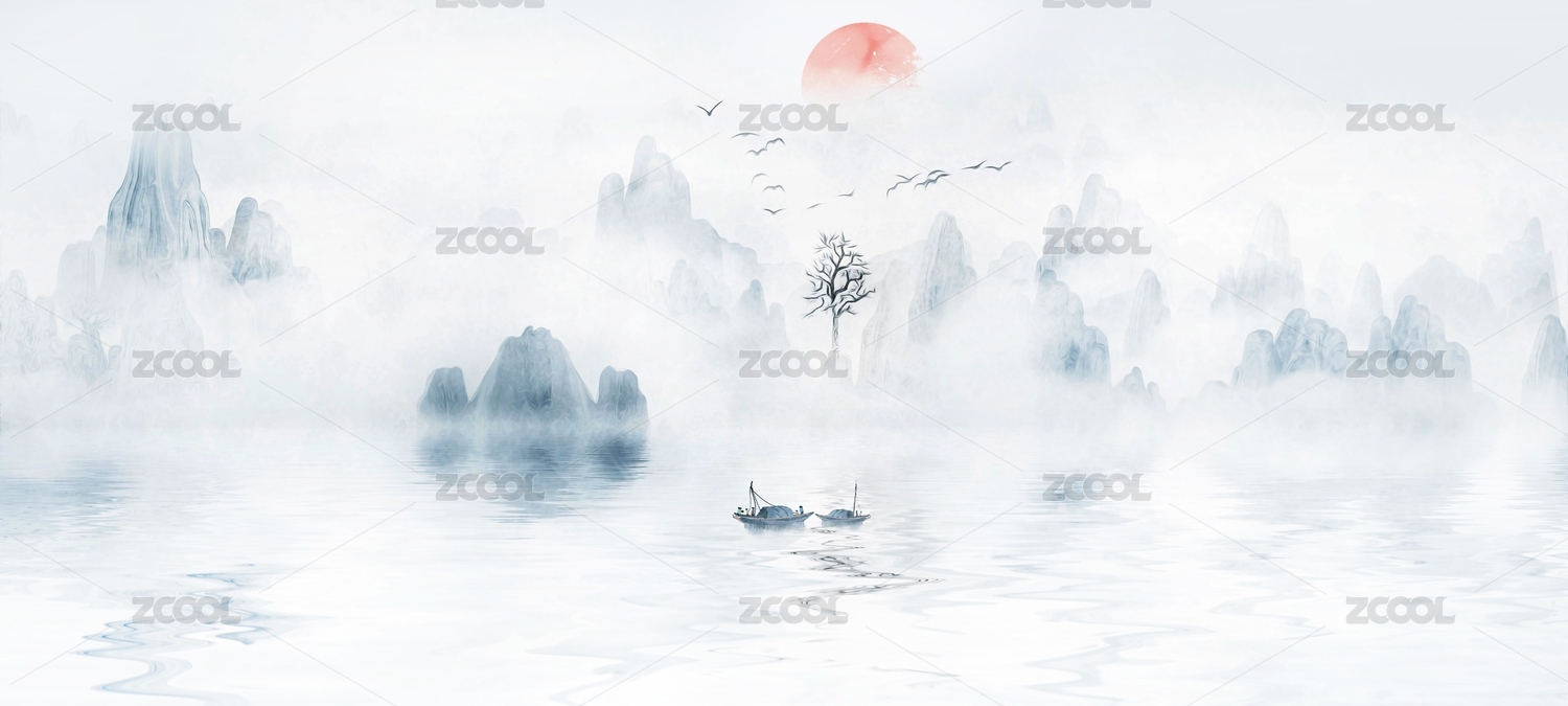 蓝色,意境,水墨,山水,风景,艺术,插画,山水画,背景墙,背景