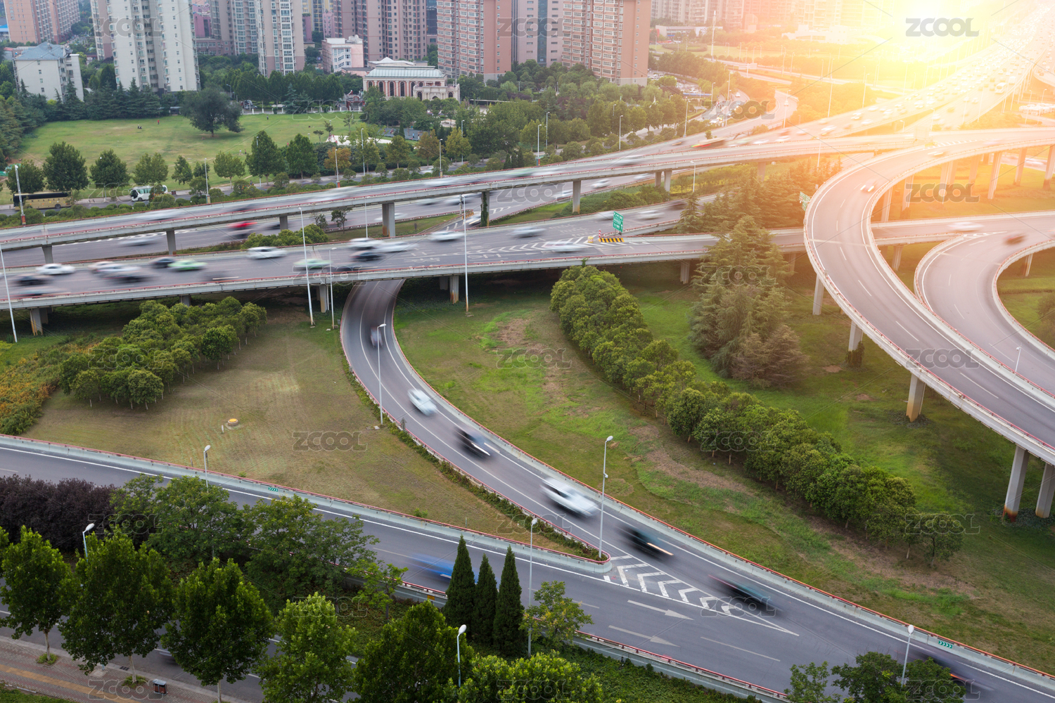 城市景观, 立交桥, 飞驰的汽车尾灯形成的光的轨迹