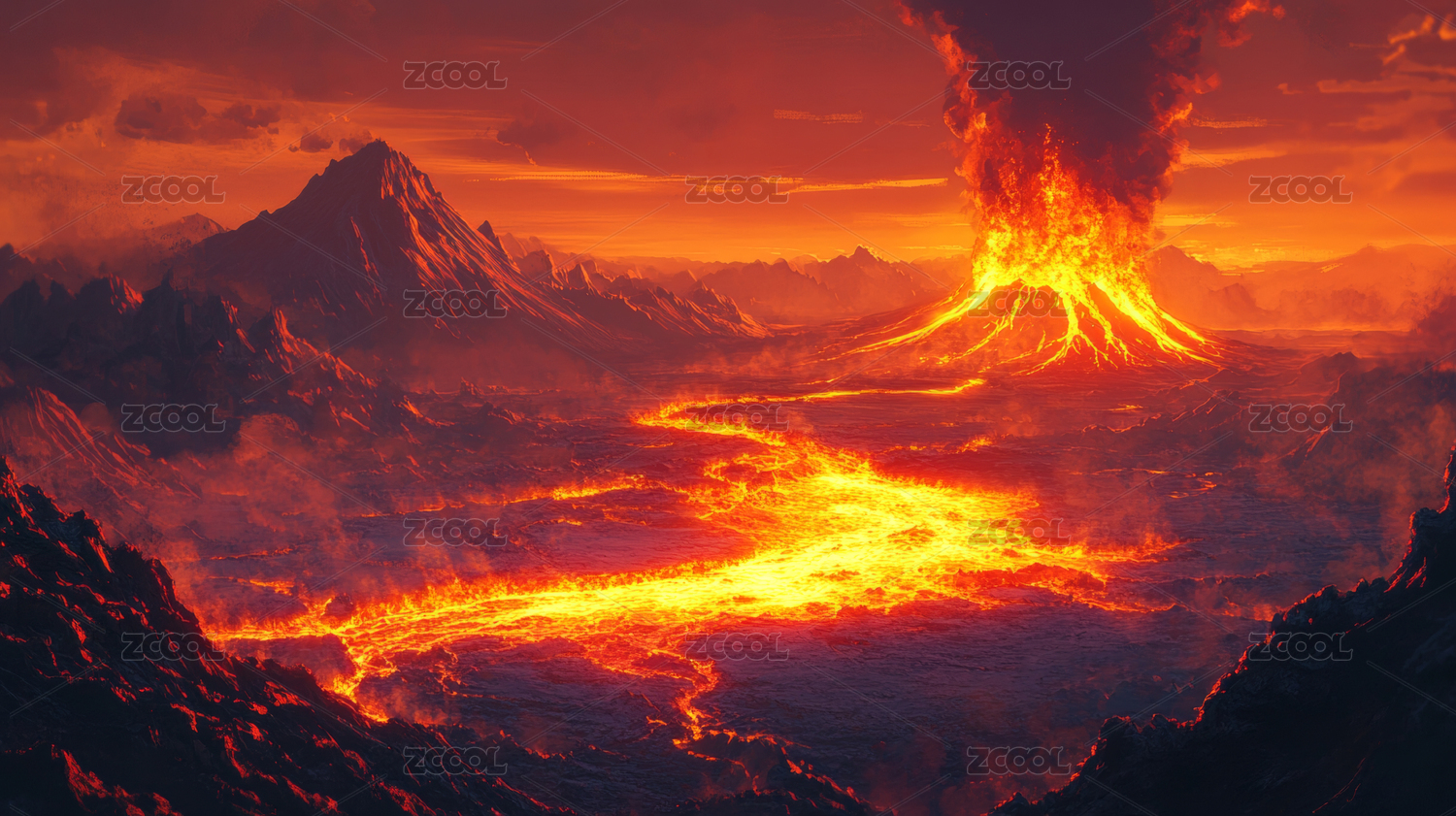 火山喷发熔岩流淌