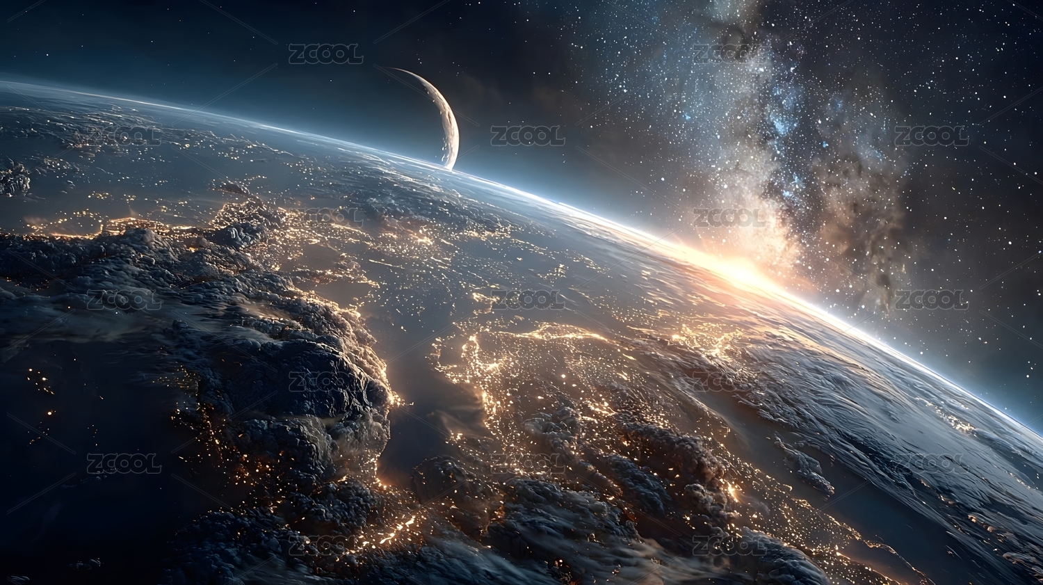 地球晨曦与宇宙星空