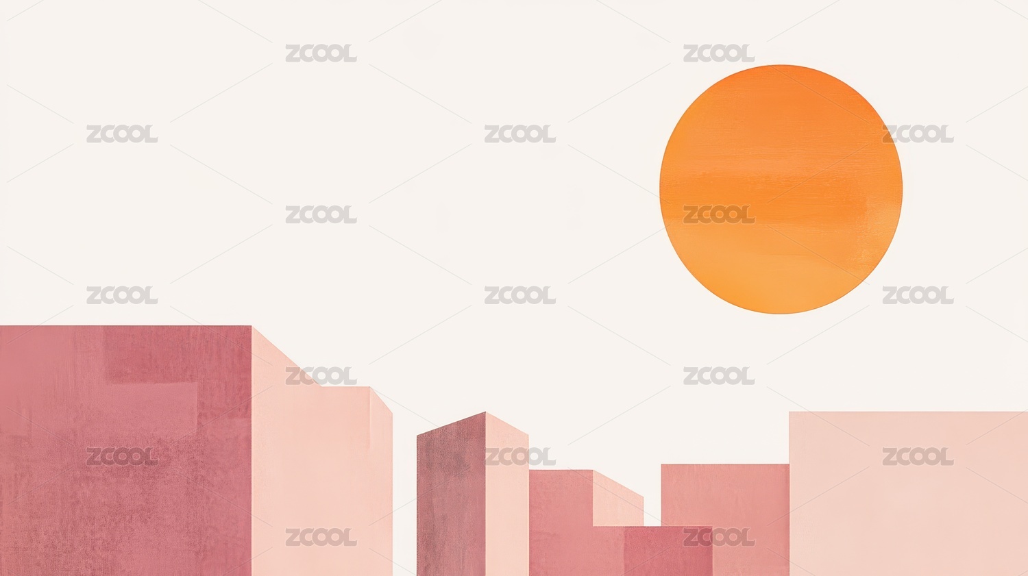 抽象几何城市景观与橙色圆日
