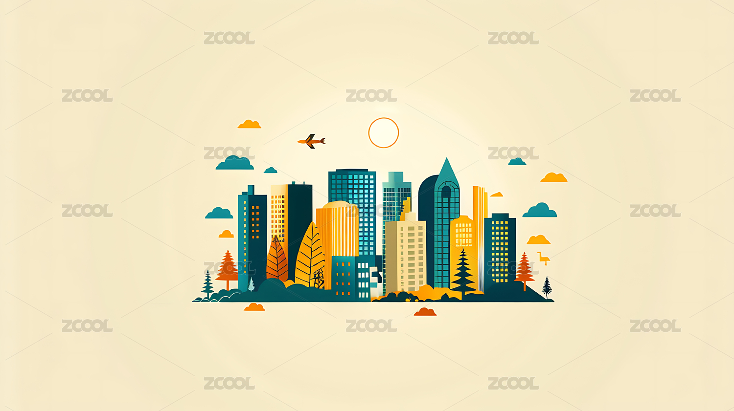城市树木建筑简约风格