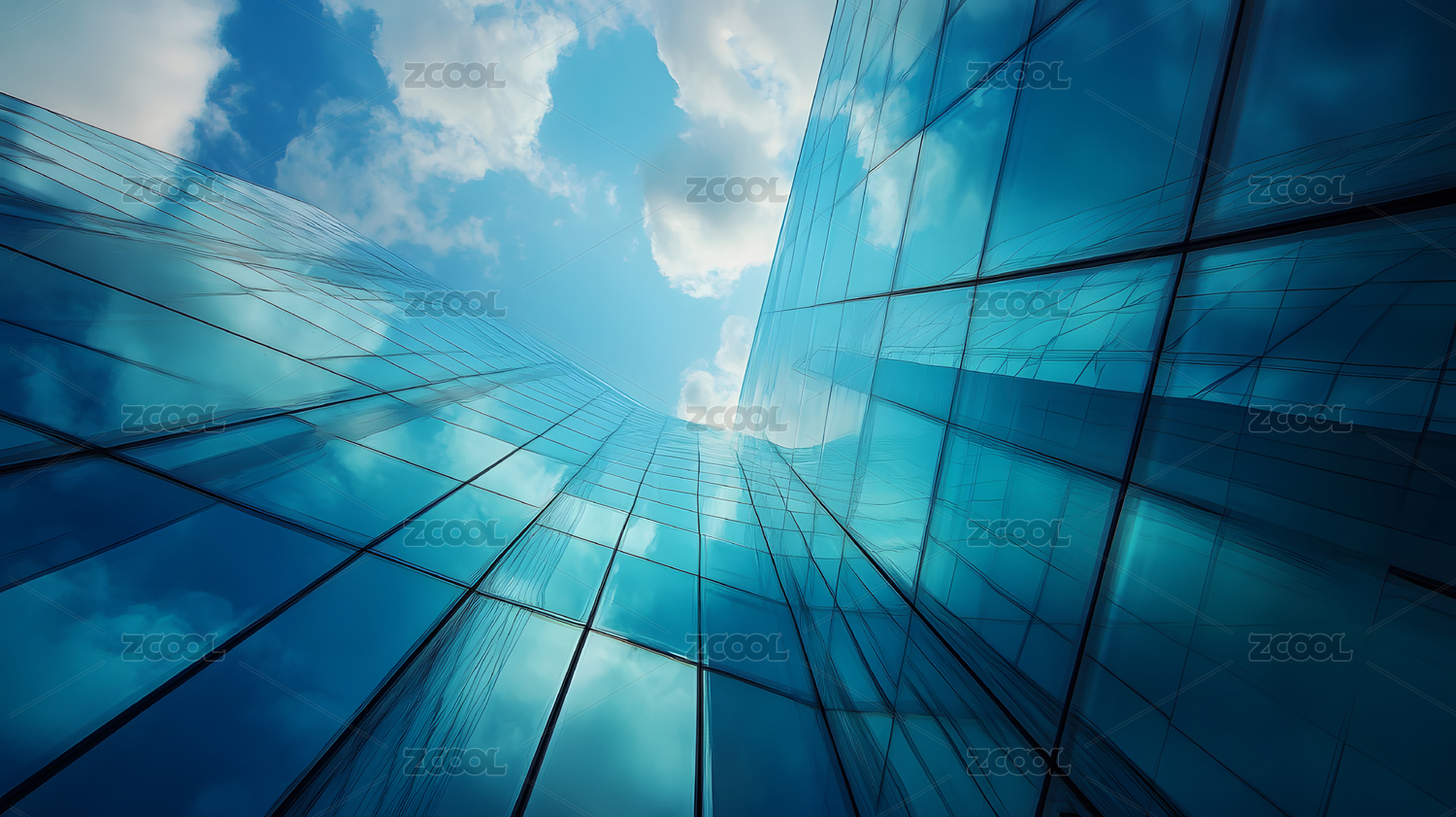 摩天大楼玻璃幕墙反射天空