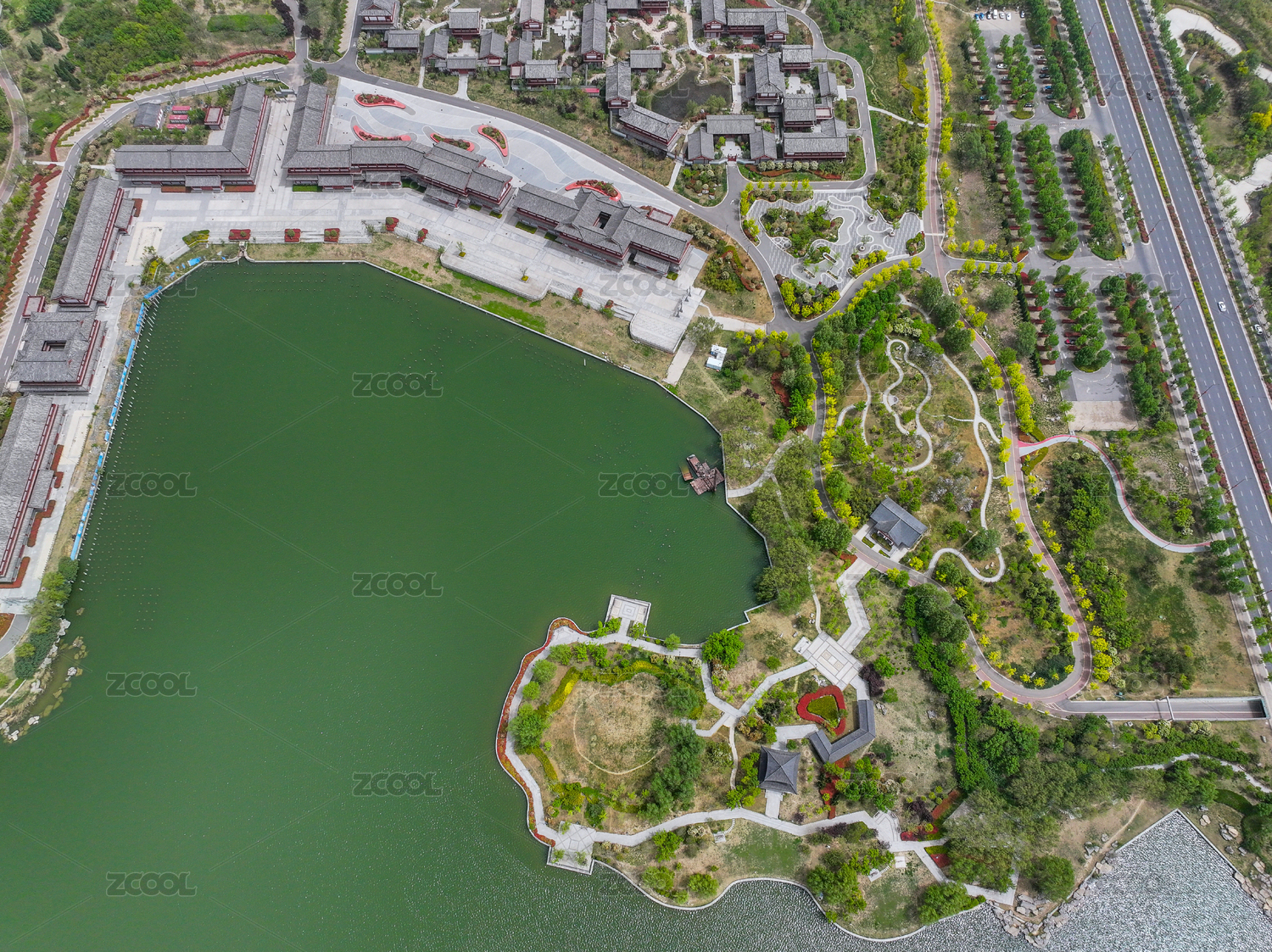 陕西西安长安区清凉山城市公园建筑风光航拍