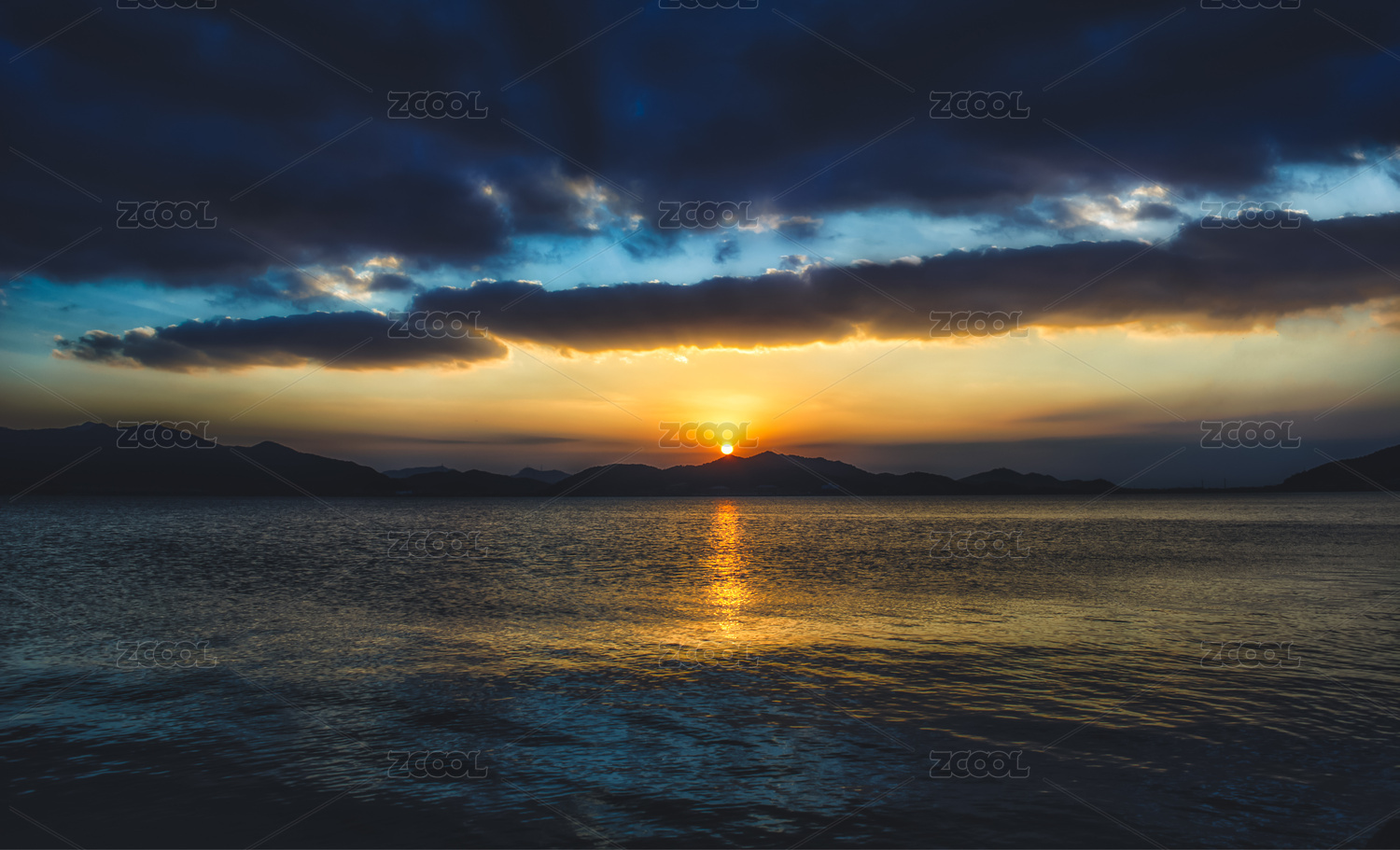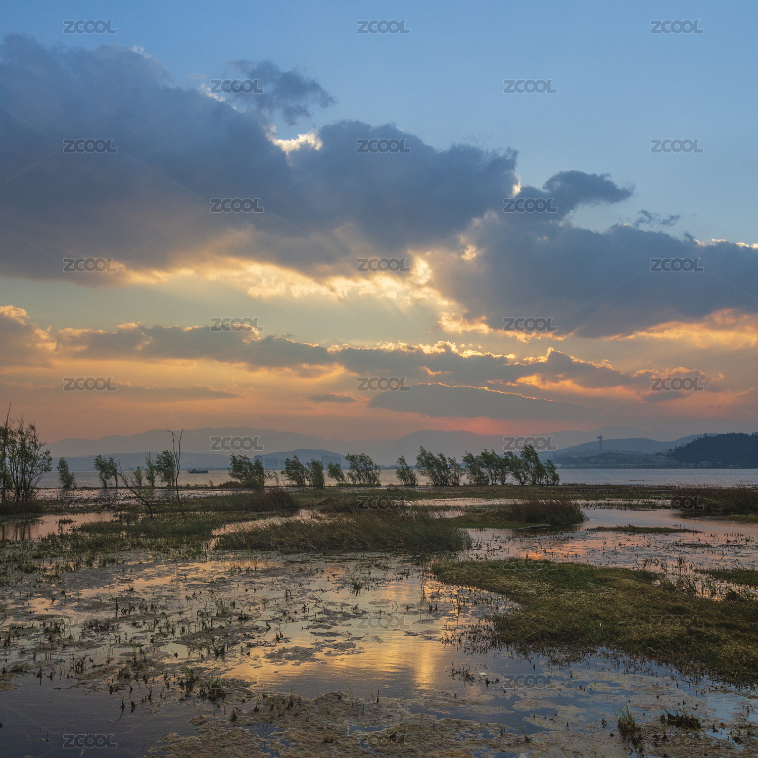 中国云南省玉溪市澄江县抚仙湖落日风光