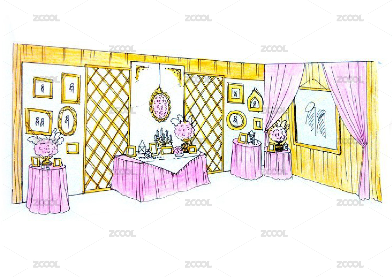 画展布置 图片展示区 商品陈列 黄色 粉色