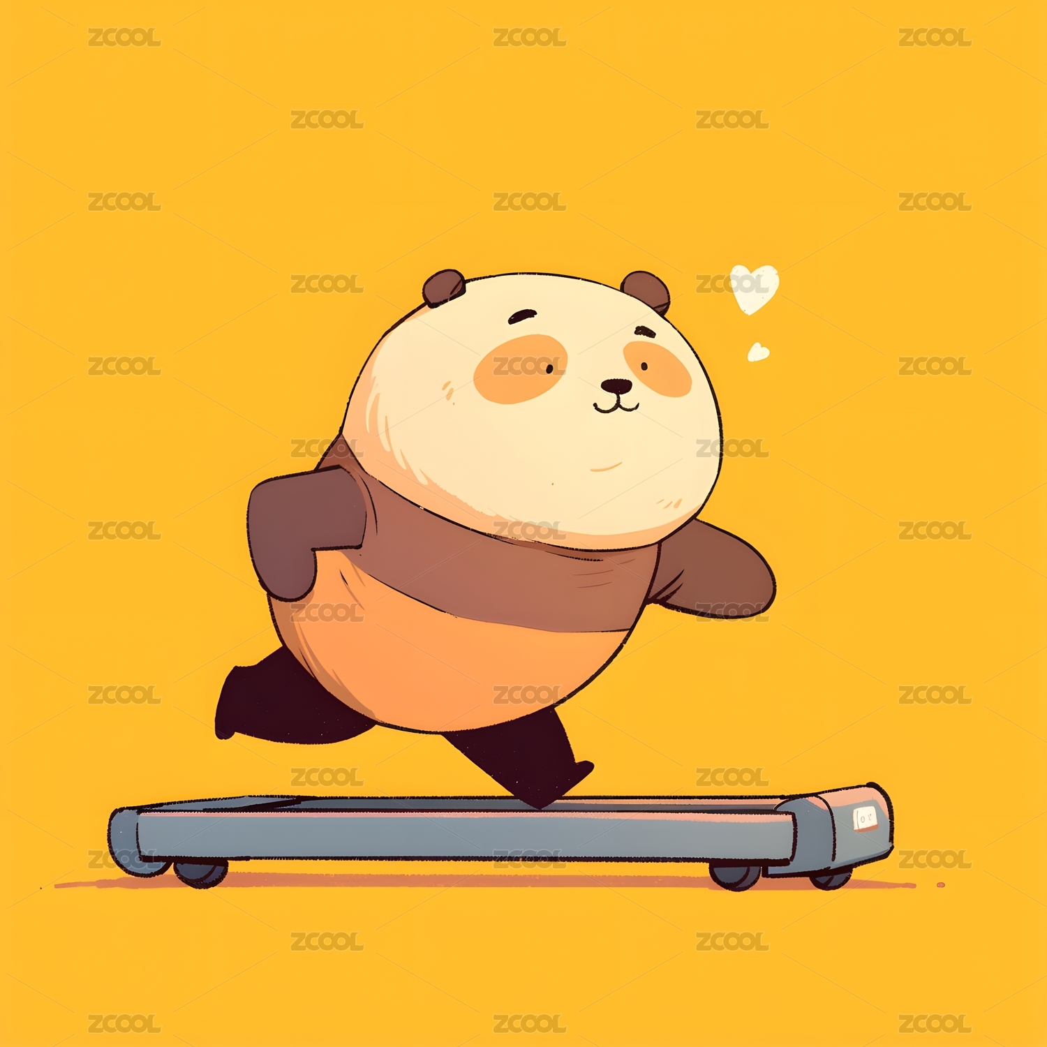 卡通线条矢量风格熊猫在跑步机上运动的插画