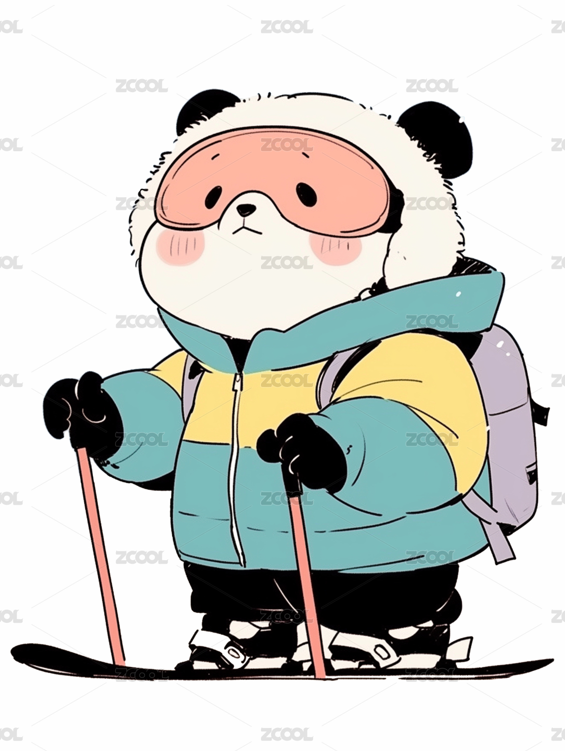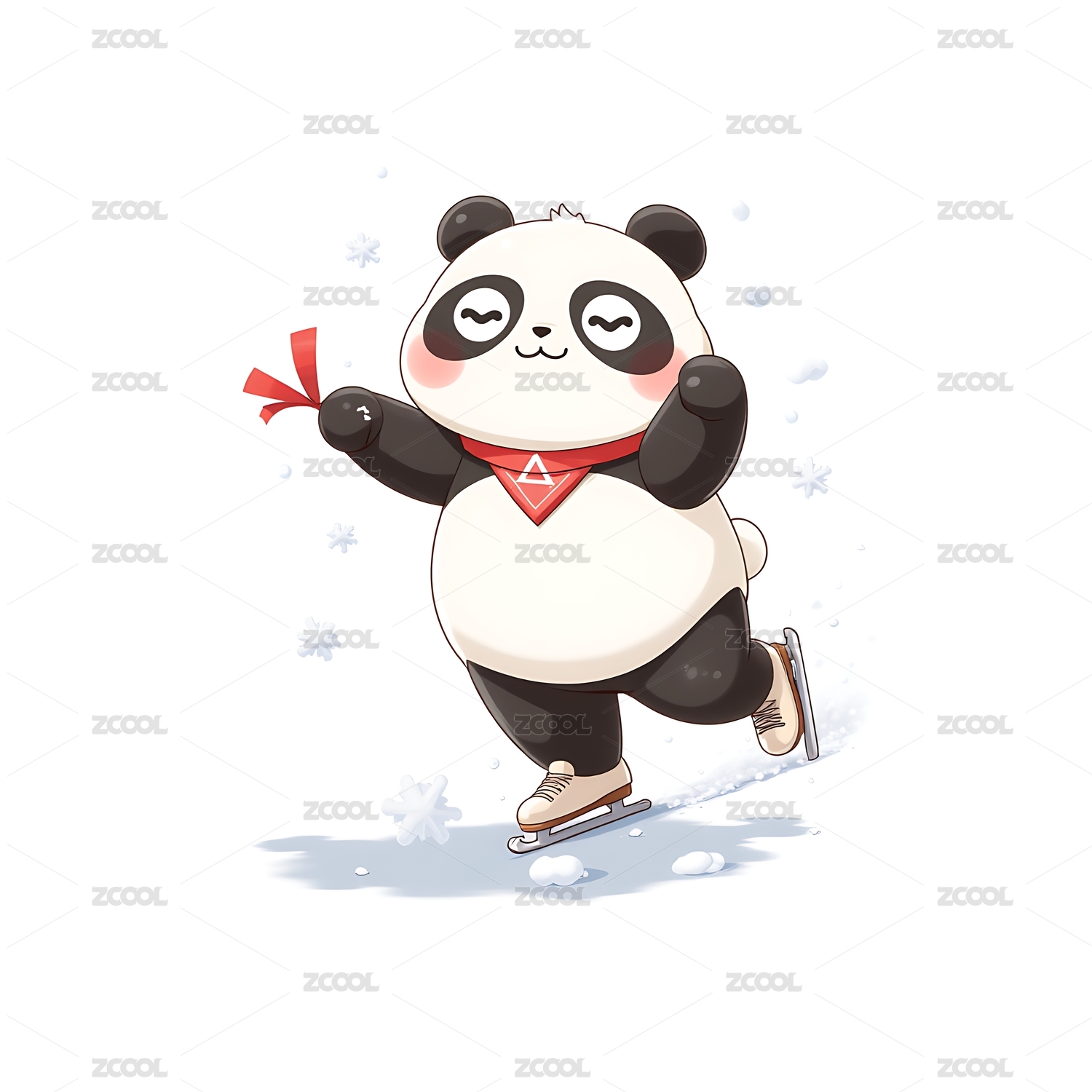 熊猫滑冰卡通插画