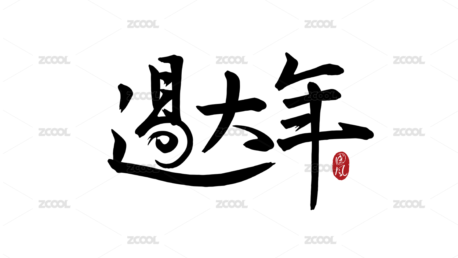 中国传统节日手写书法字体大年