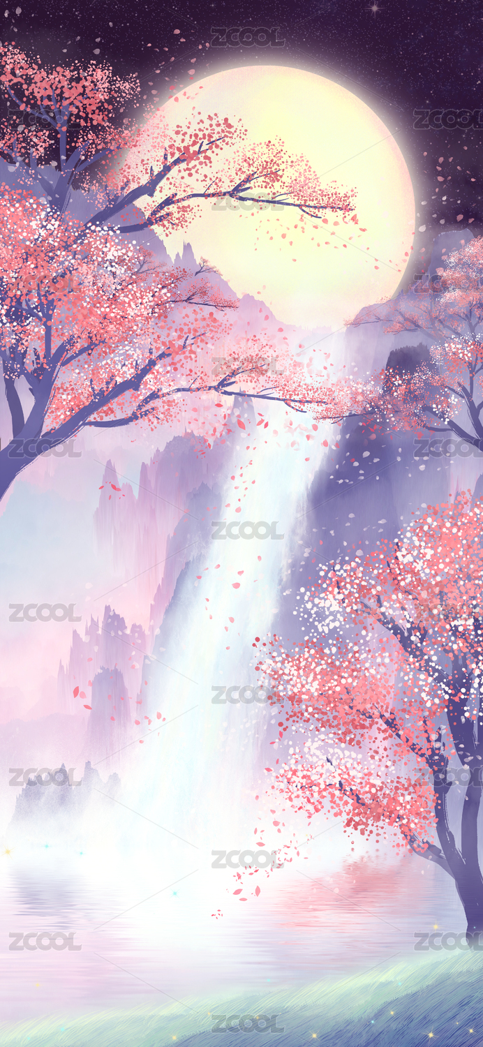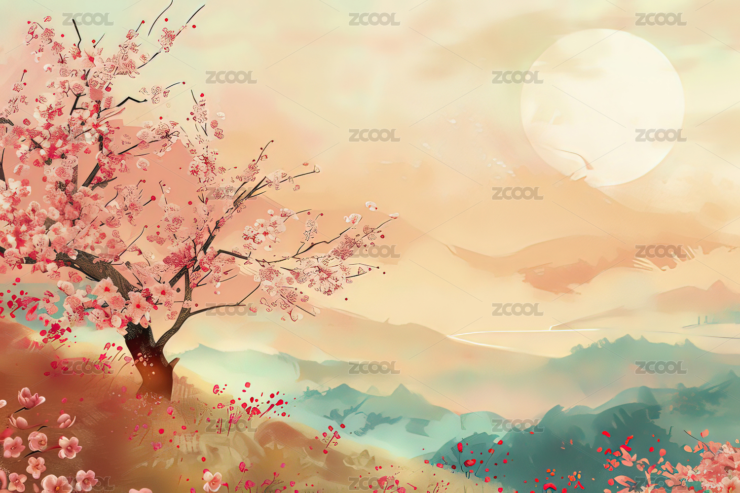背景,月亮,古风,花,中秋,节日,插画,圆月,花树,唯美