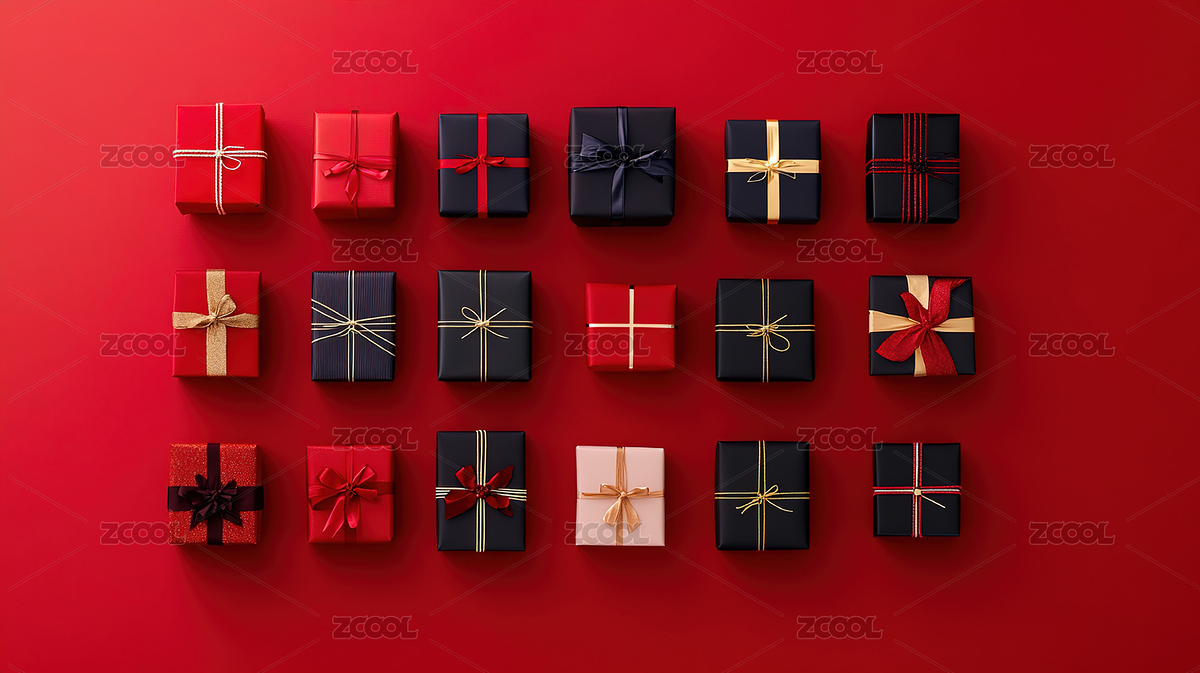 红色圣诞节电商风格喜庆礼物盒子展示台