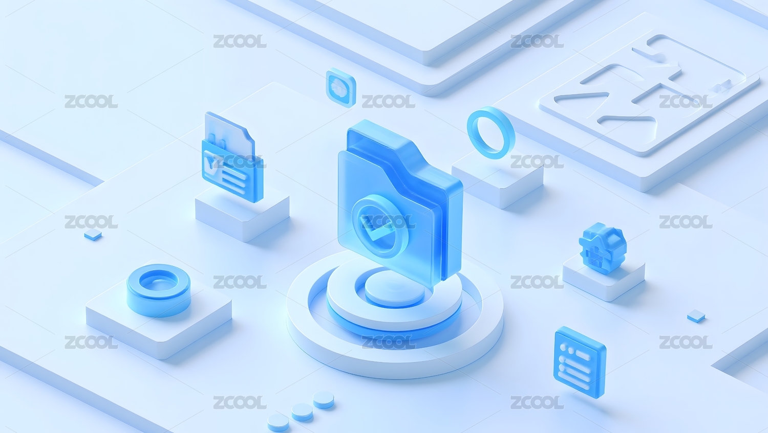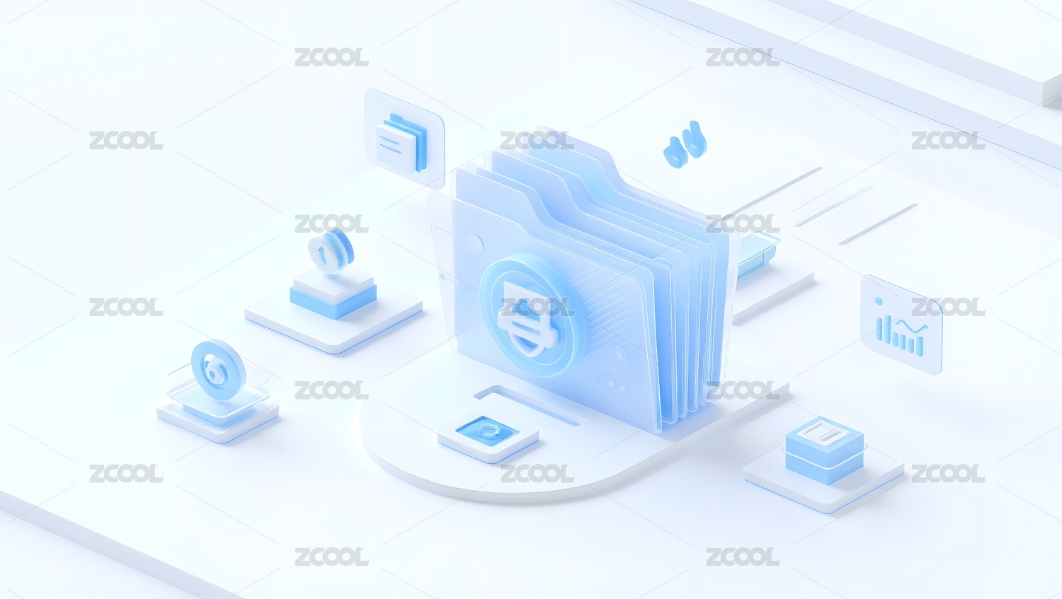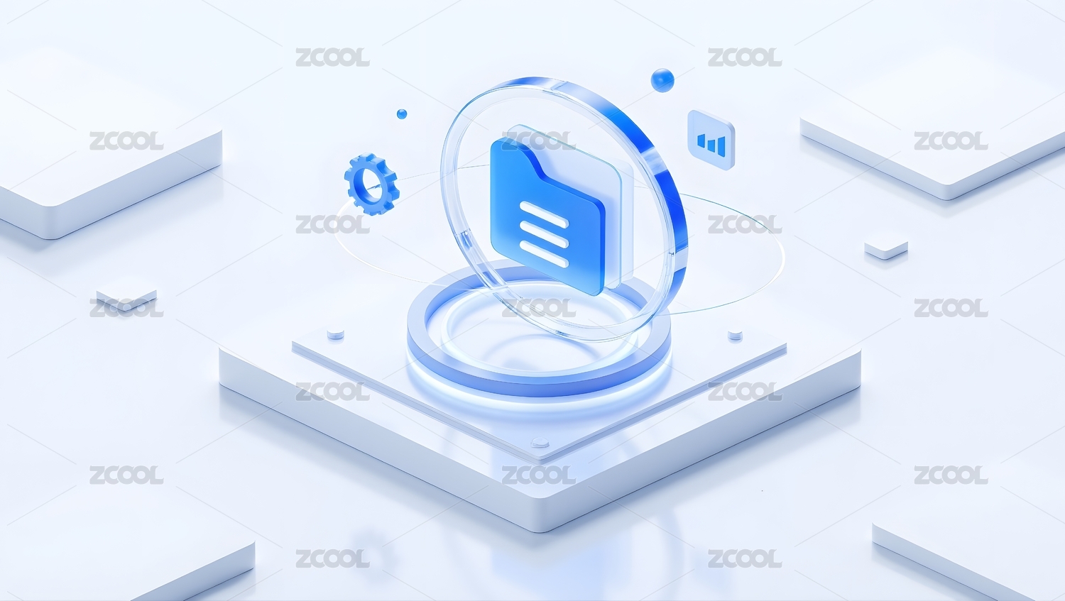 科技蓝白档案文件夹概念智能浅色科技感场景