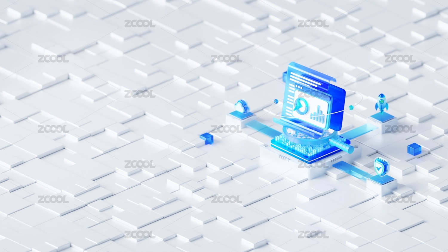 科技蓝白魔方概念智能浅色科技感立体场景