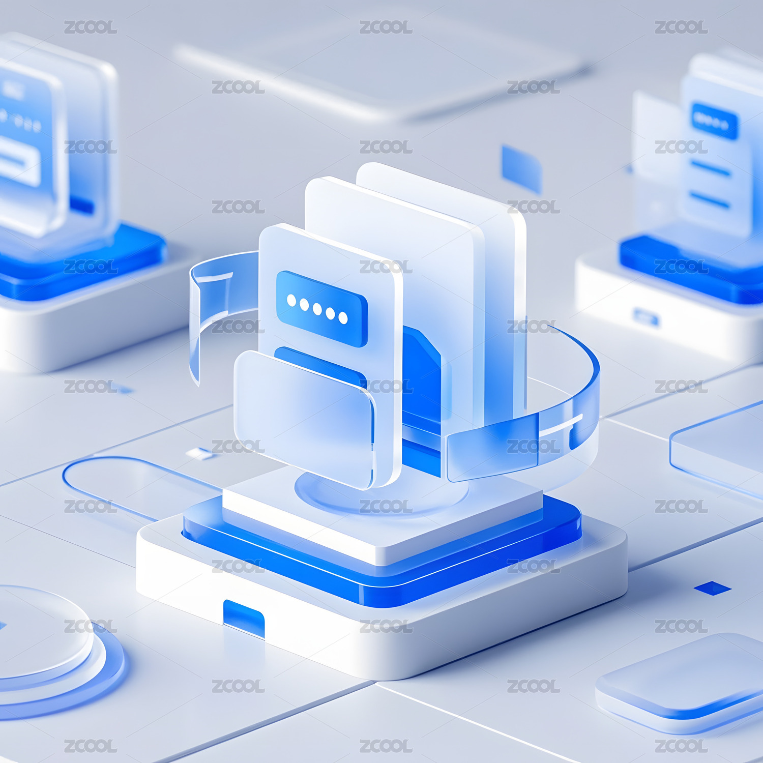 蓝色系 3D 信息交互图标模型展示