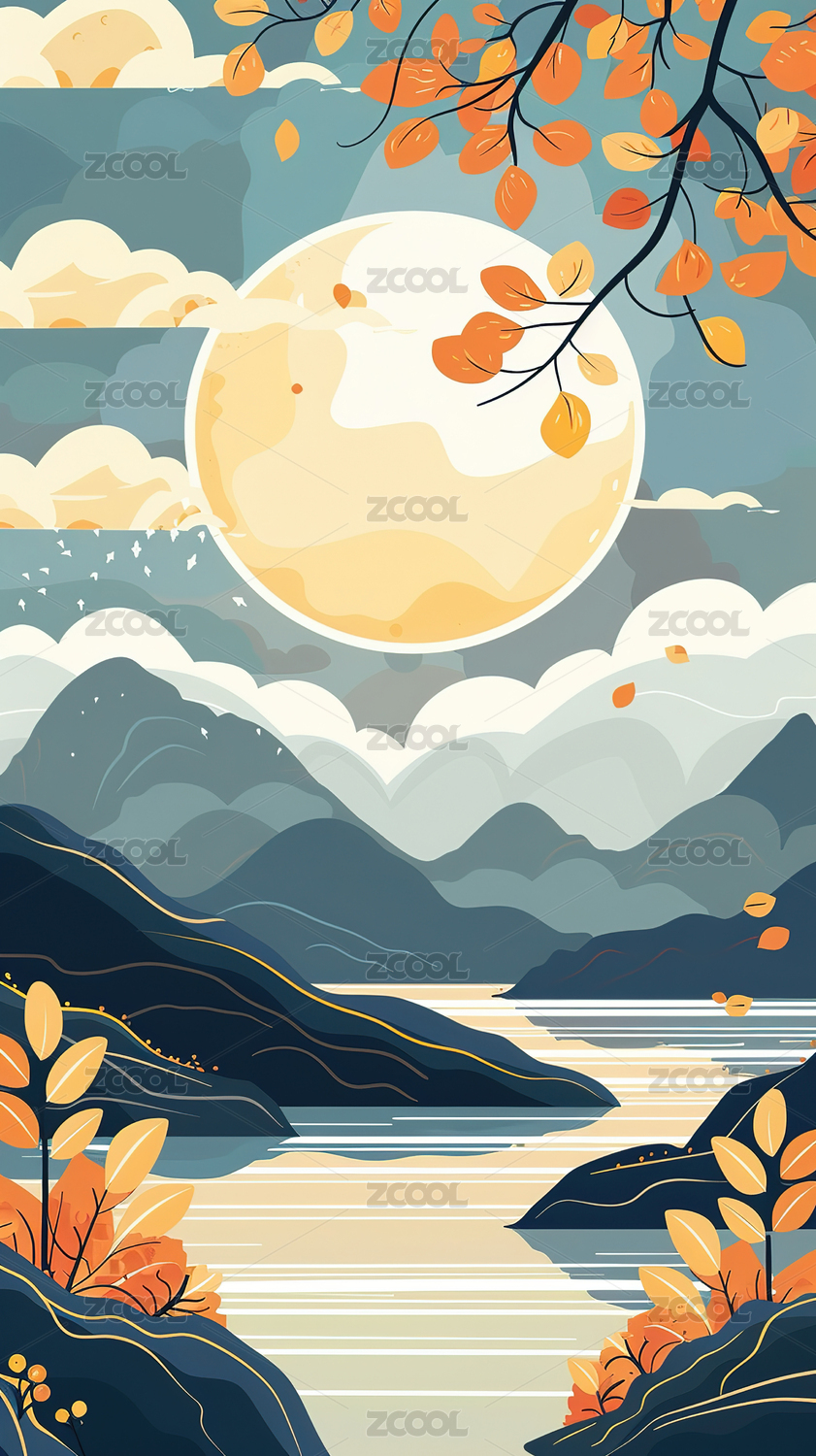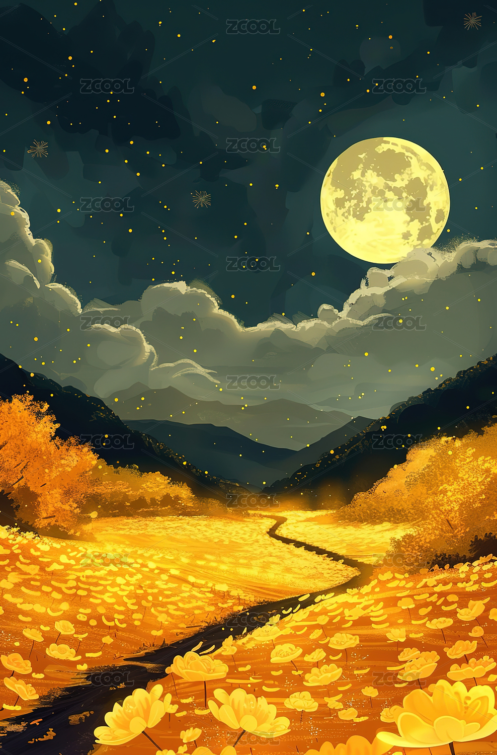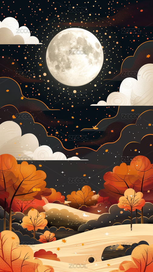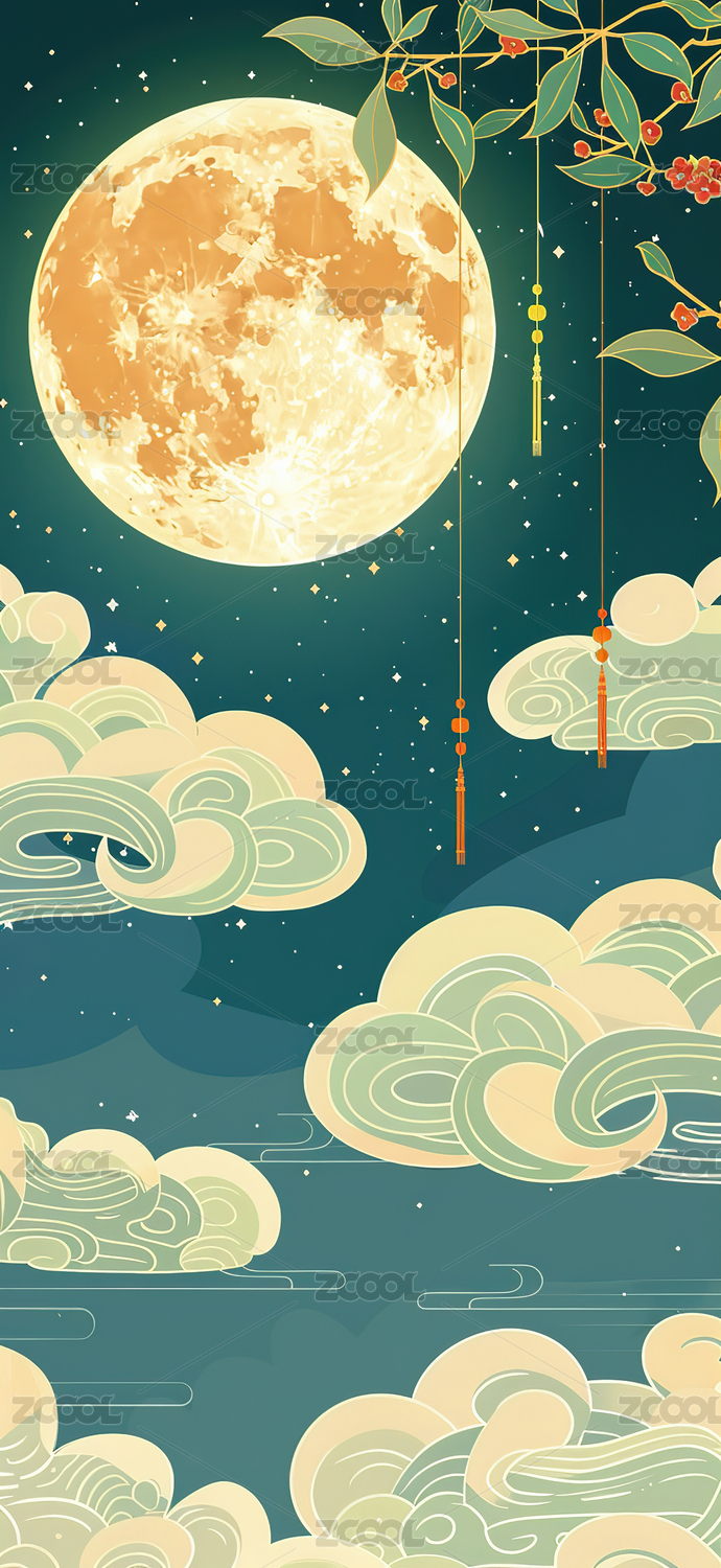 AIGC202403,月亮,传统,文化,中秋节,云,圆月,满月,节日,插图