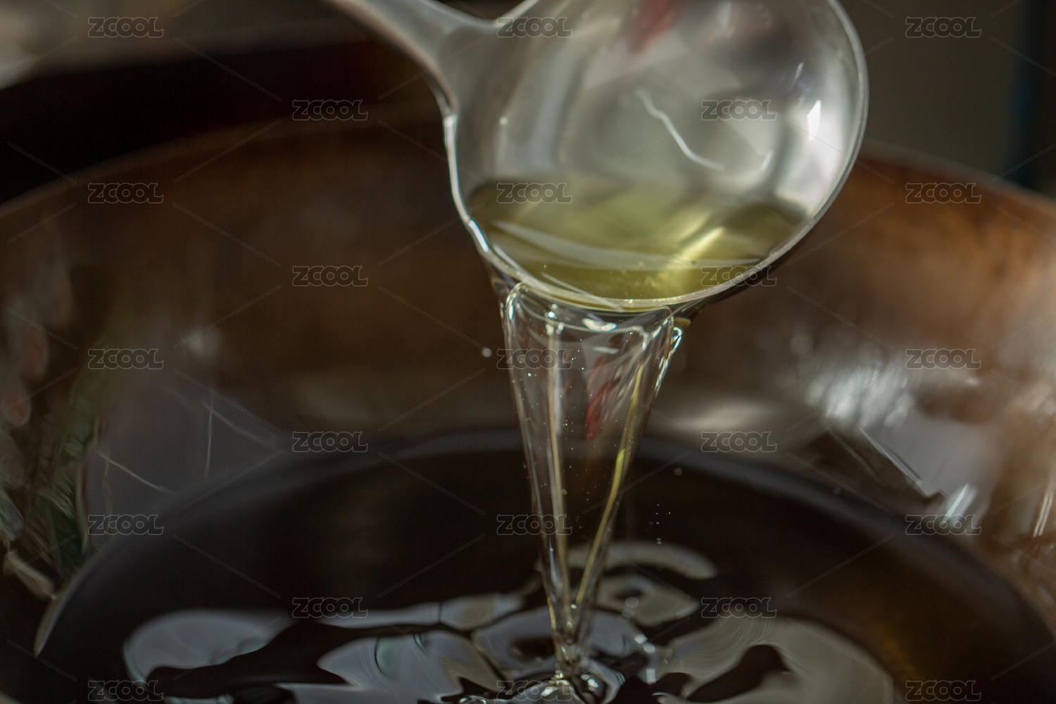 正在倒入铁碗中的猪油