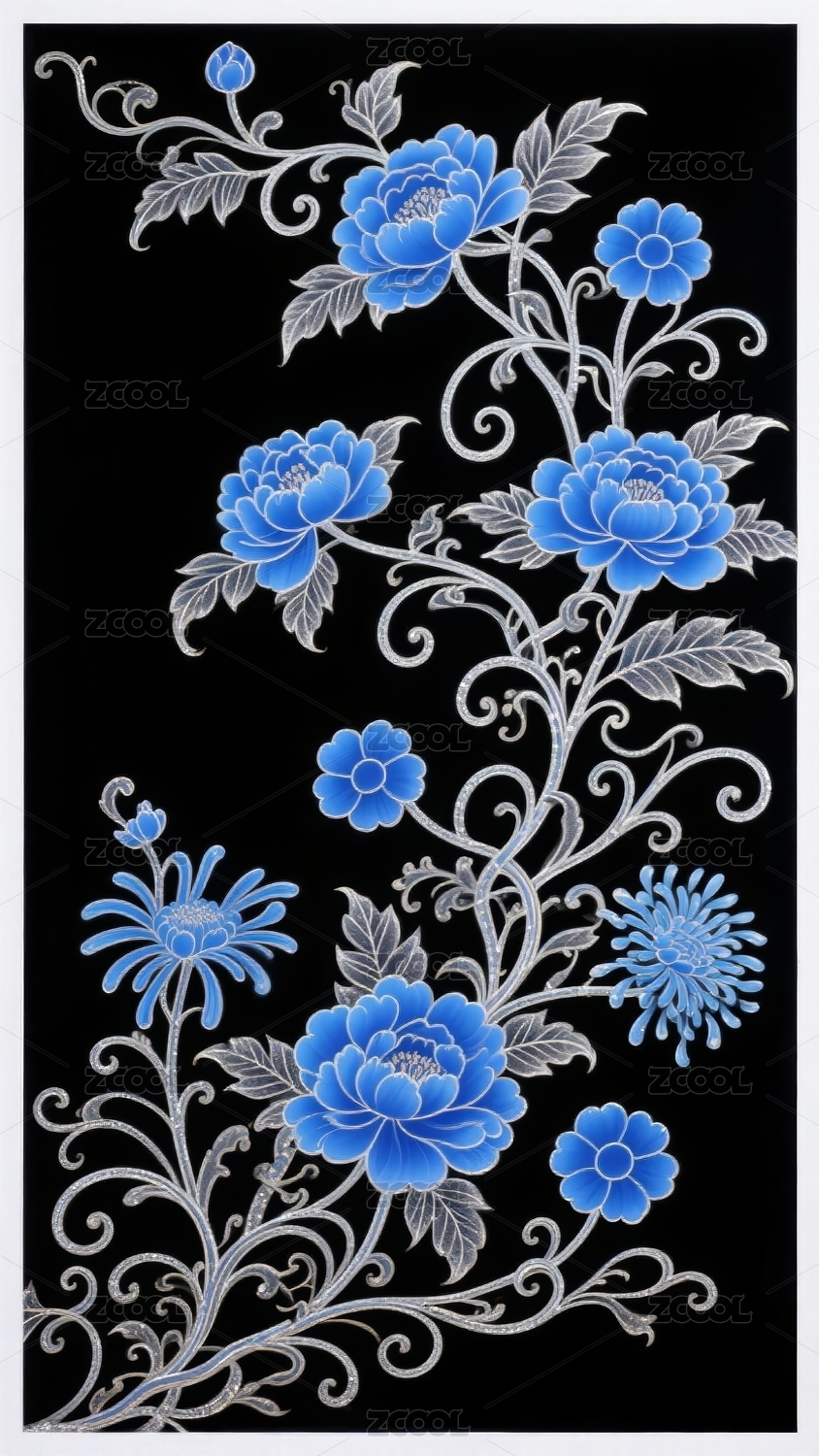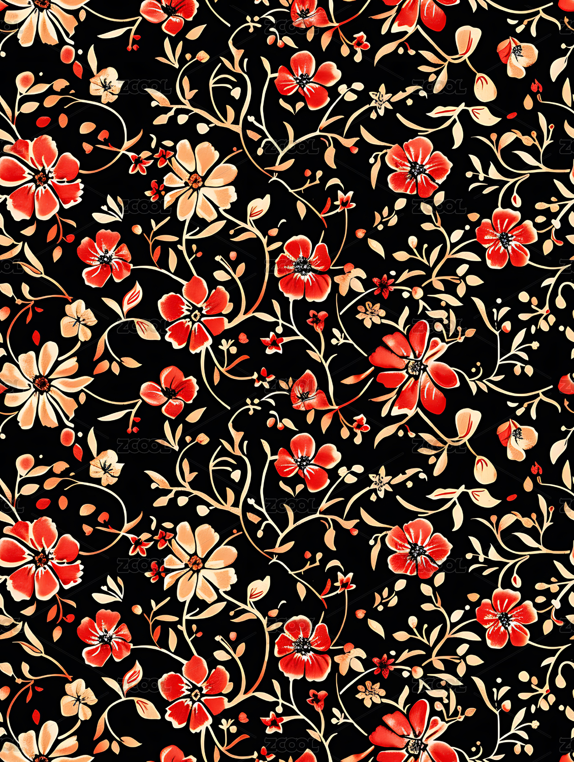 复古花叶藤蔓平铺底纹壁纸墙纸包装纸花色式