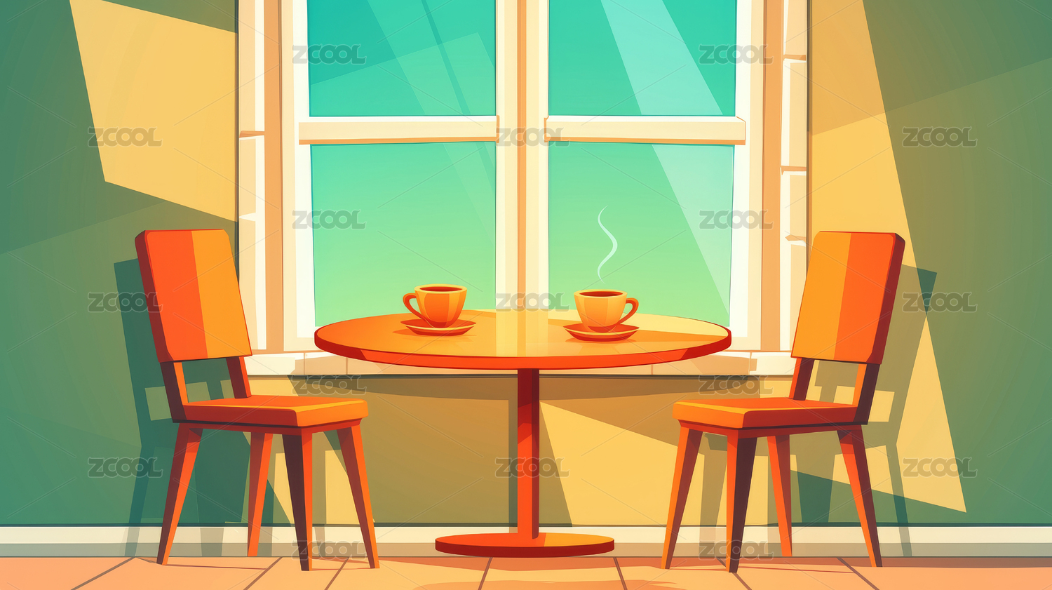 插画,插图,背景,素材,桌子,木桌,书桌,餐桌,家居,现代