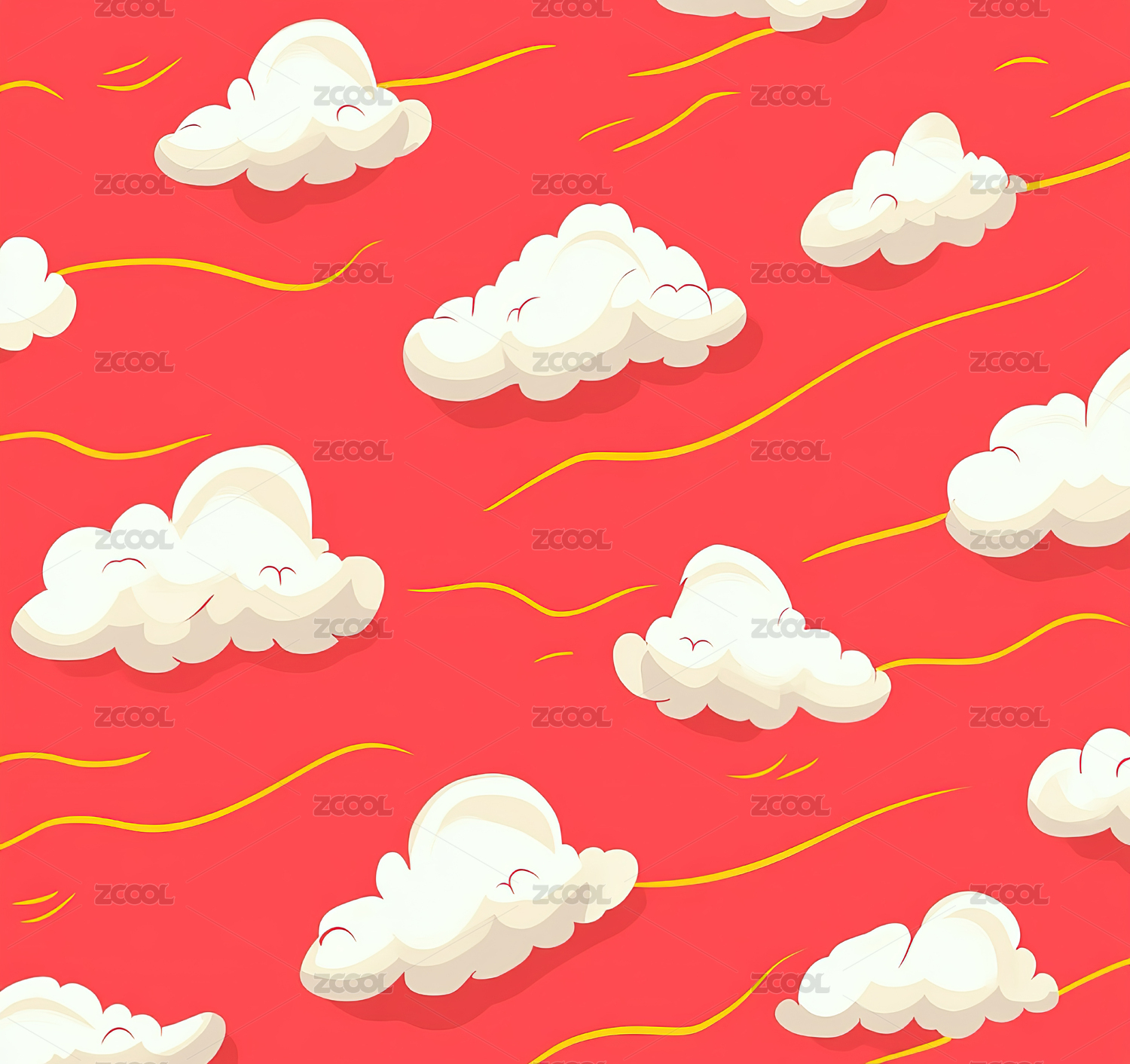 晴朗蓝天白云卡通四方连续无缝循环拼接图案