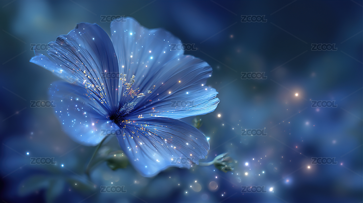 闪耀星光的蓝色花朵,梦幻般的光影交织