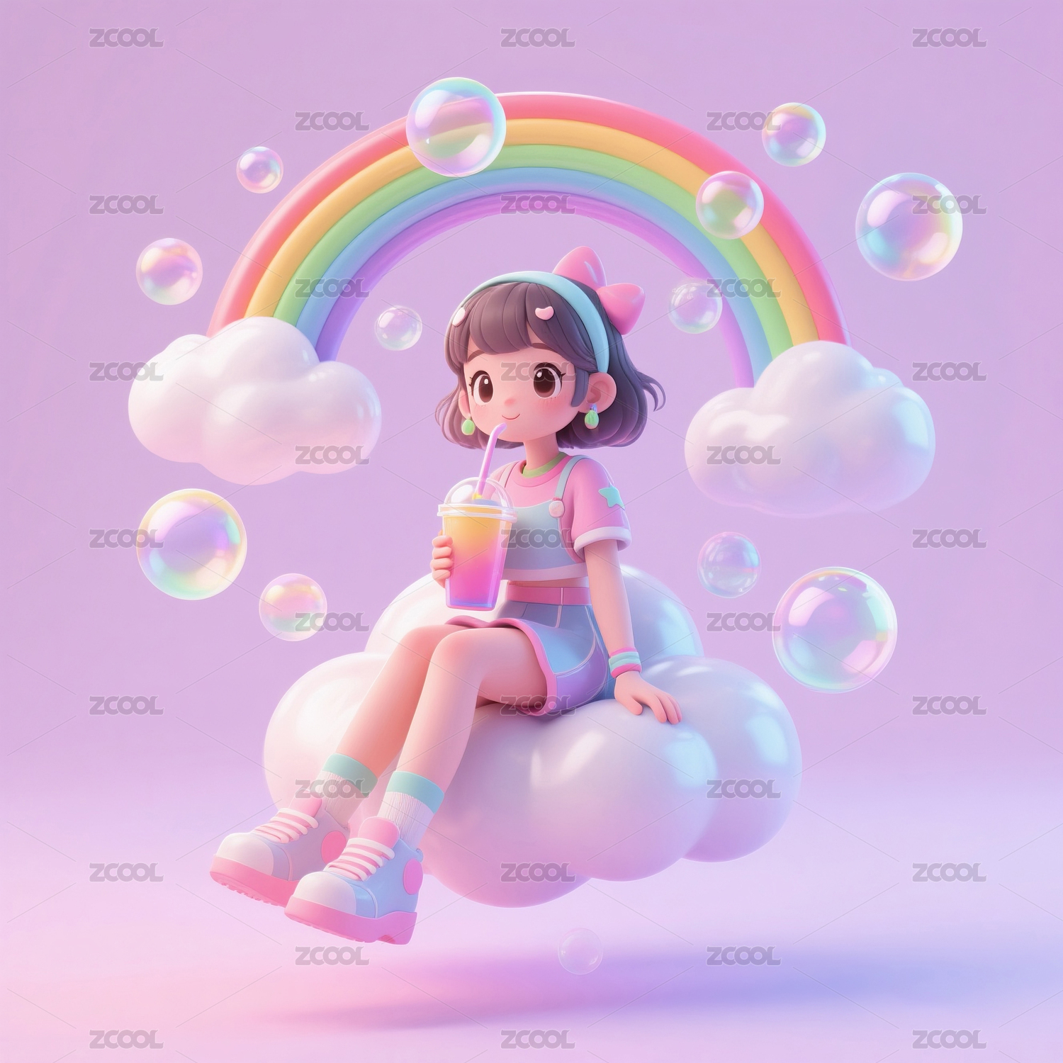 3D卡通多巴胺女生人物