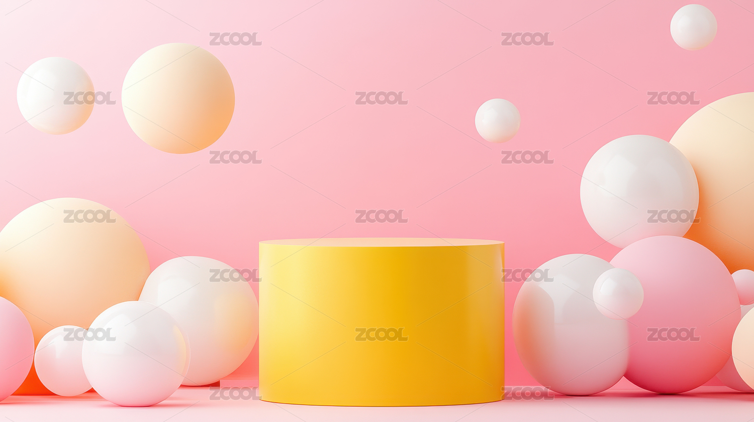 黄色圆柱形讲台与彩色球体背景