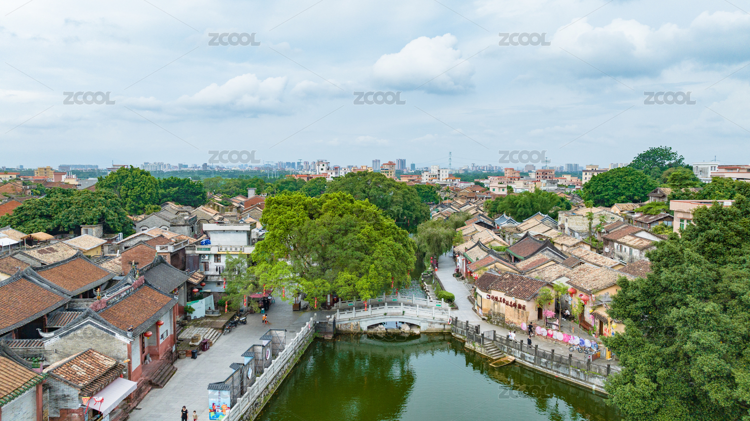 东莞,广东,茶山镇,南社明清古村落,古建筑,航拍,古迹,全景,池塘,树木