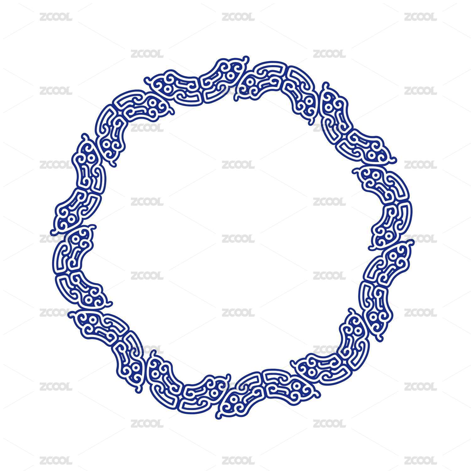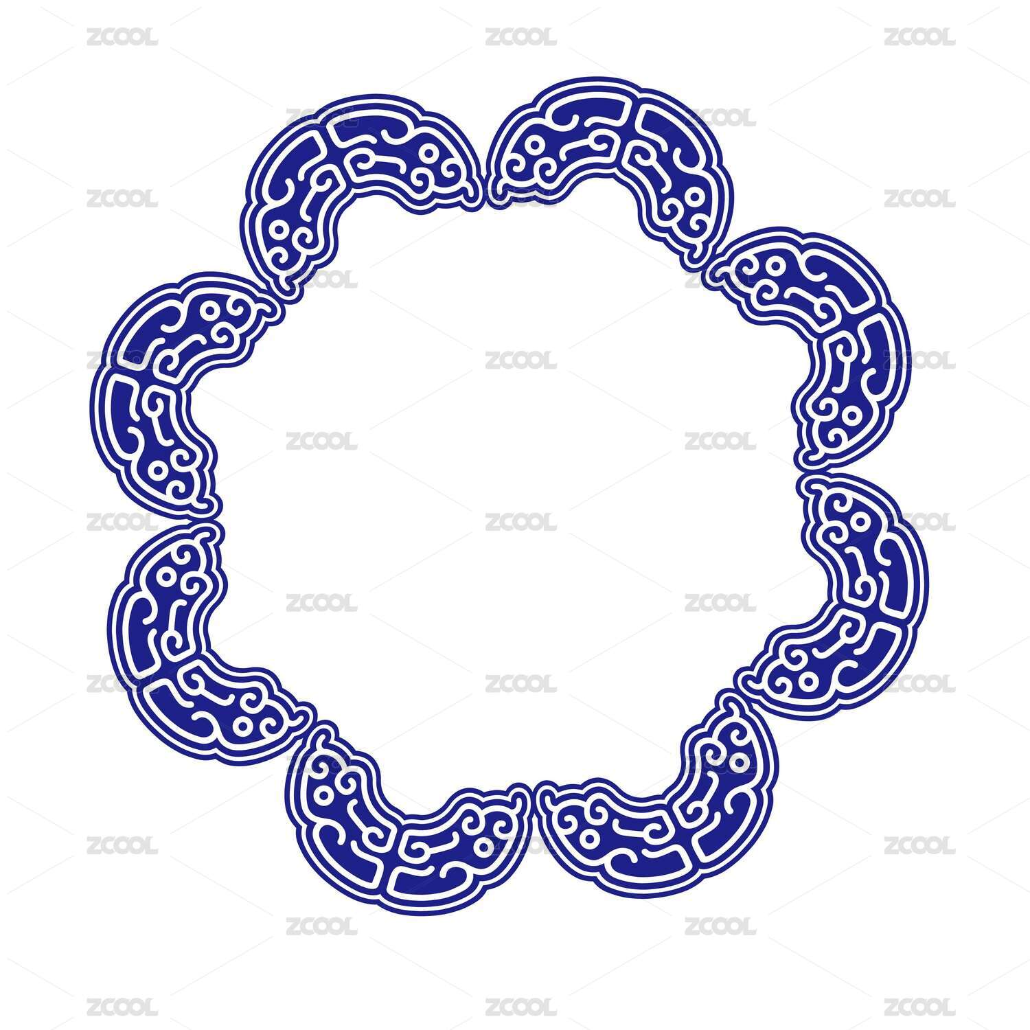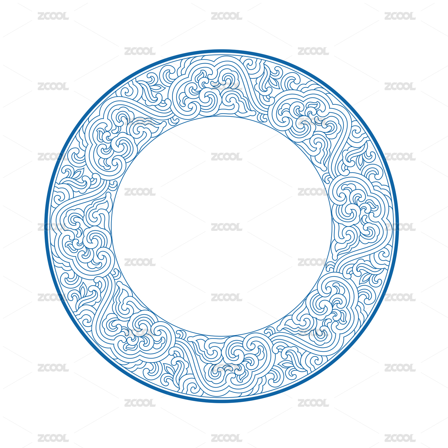 中国古典边框-圆形如意纹回纹万字纹装饰图案