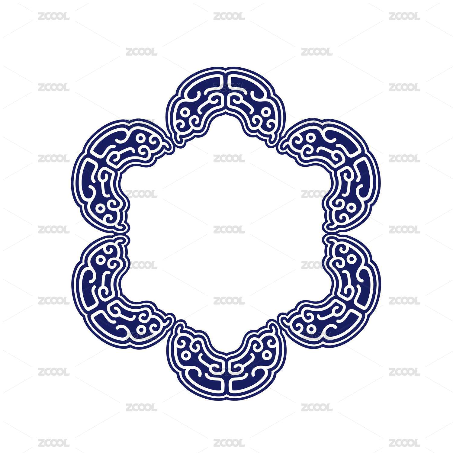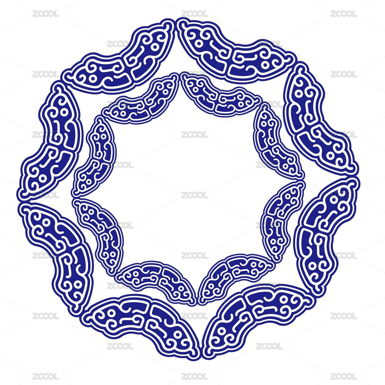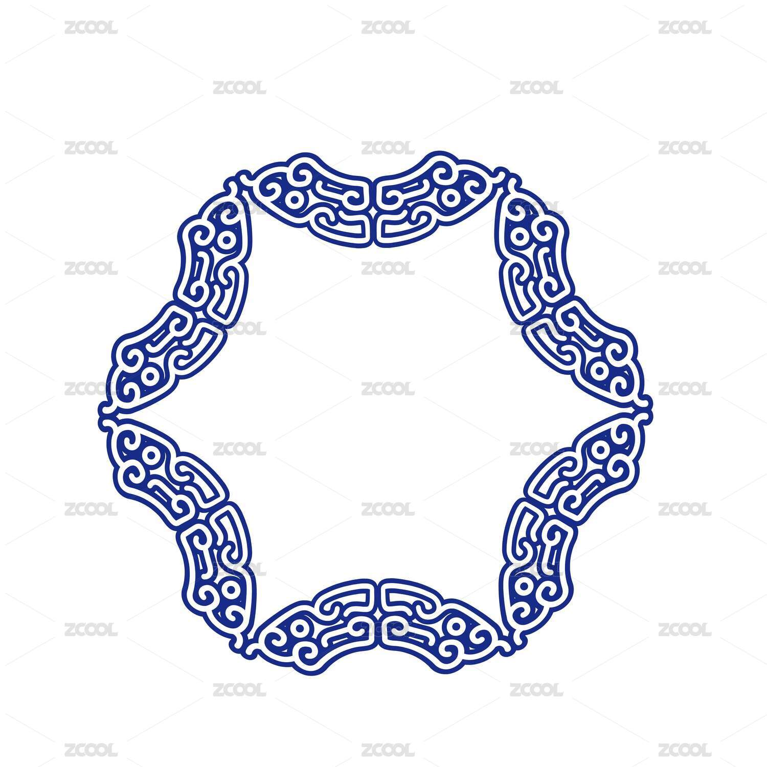 中国古典边框-圆形如意纹回纹万字纹装饰图案