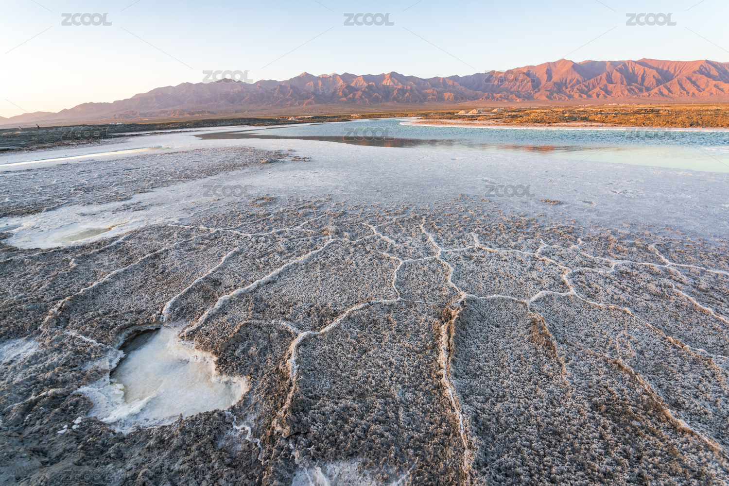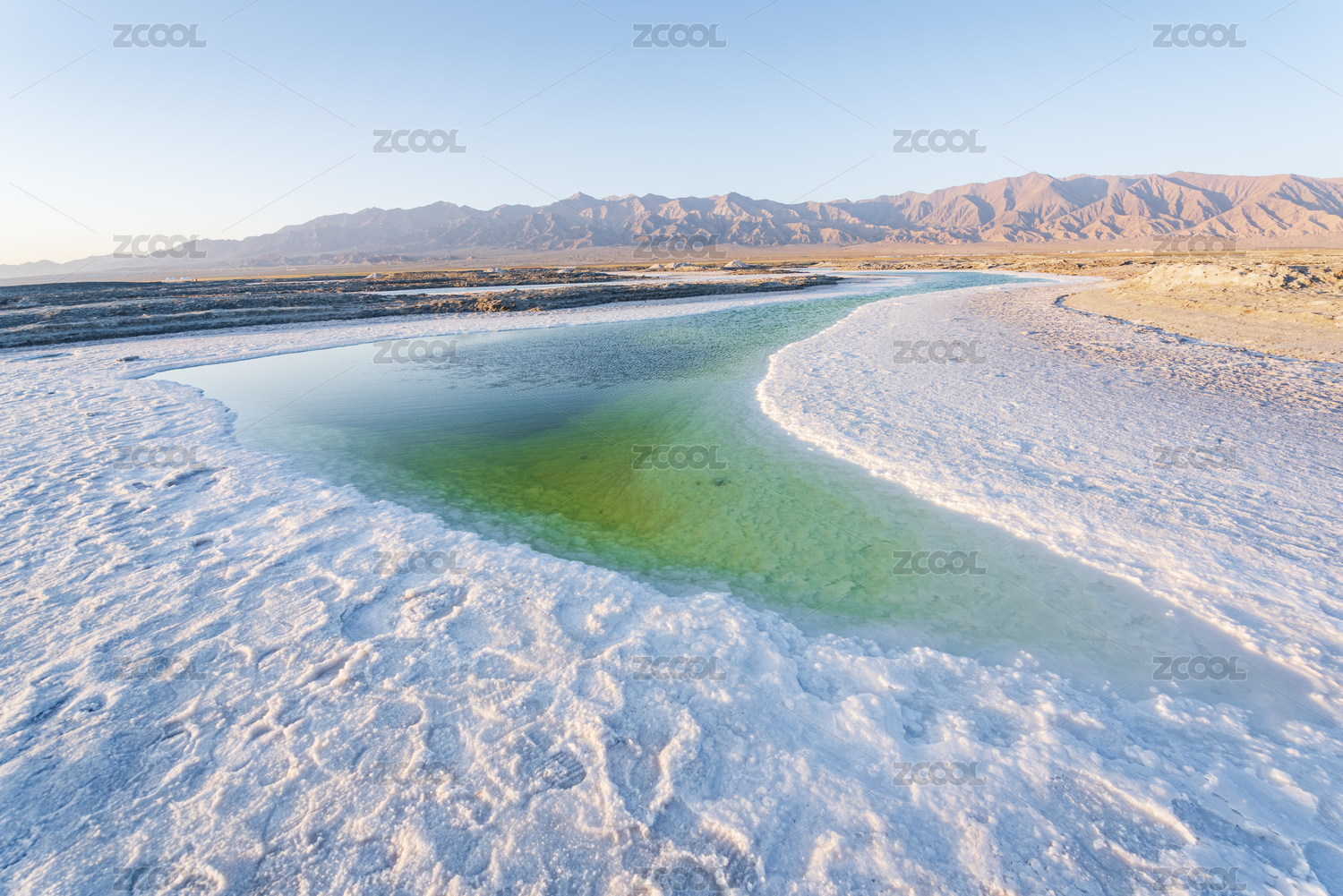 青海,盐湖,碧绿,清澈,湖,湖泊,天际线,雪白,盐,宁静