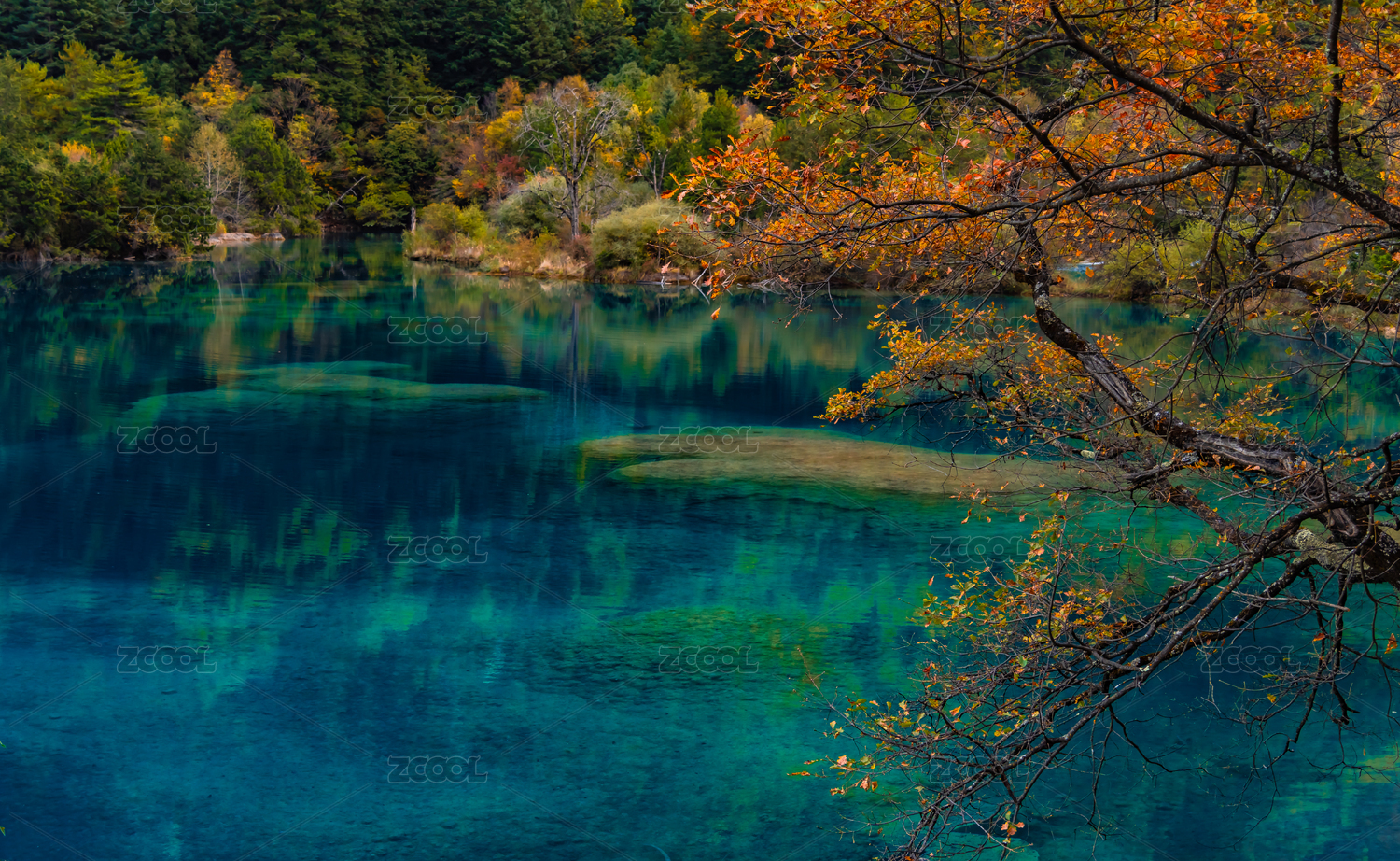 四川省阿坝九寨沟海子五花海水景