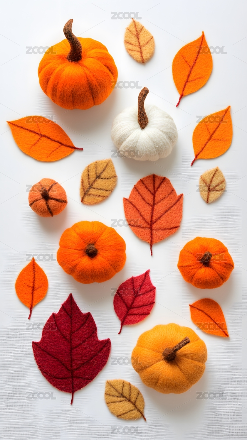 毛毡质感秋天的南瓜和树叶插画