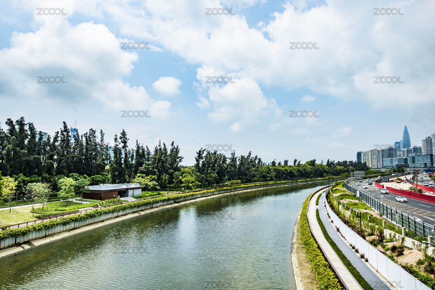 航拍海南海口美舍河凤翔湿地公园海绵城市