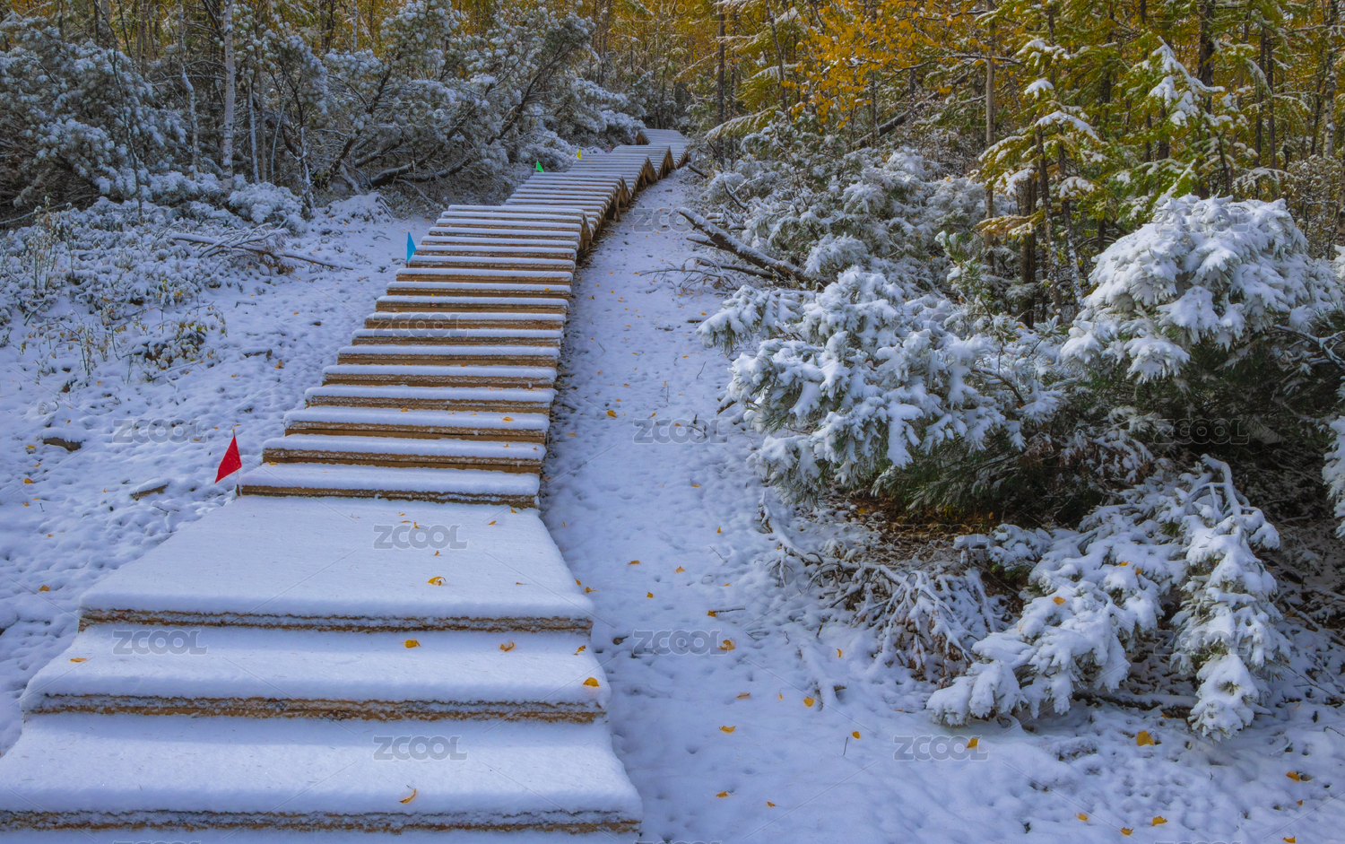 雪,台阶,阶梯,栈道,木质,树,松树,霜,冰霜,冰雪