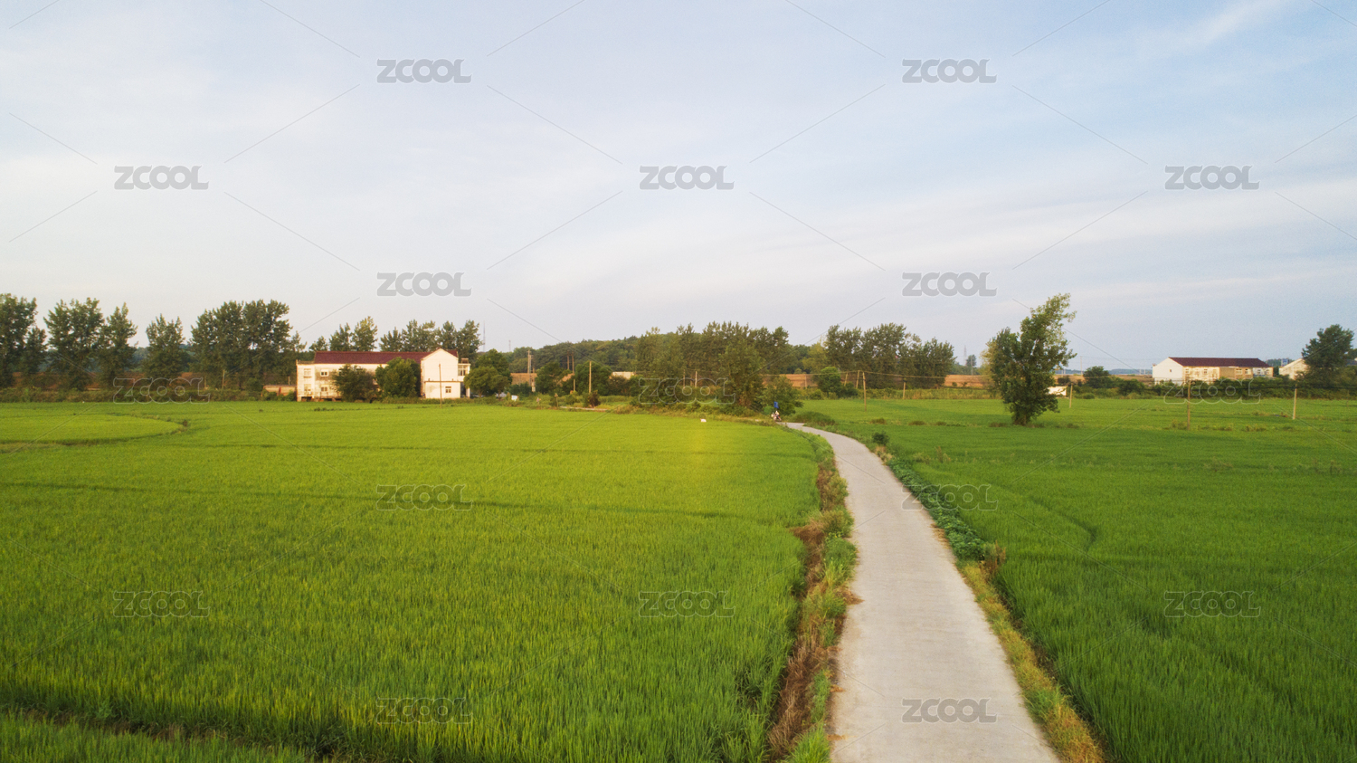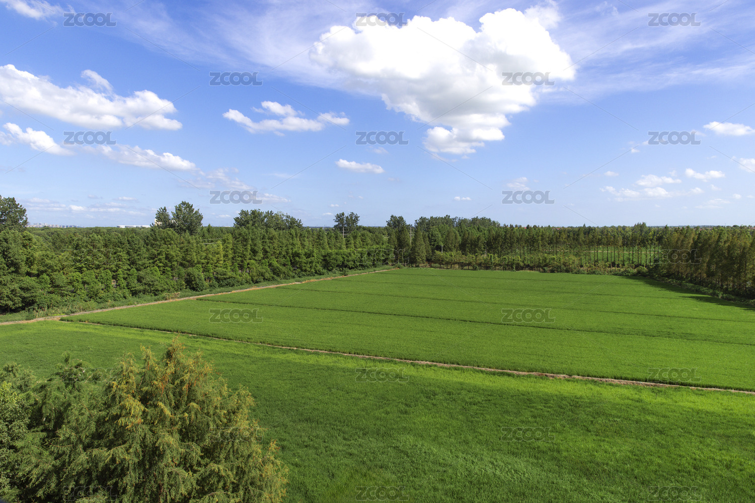 乡村的绿色农田与蓝天白云