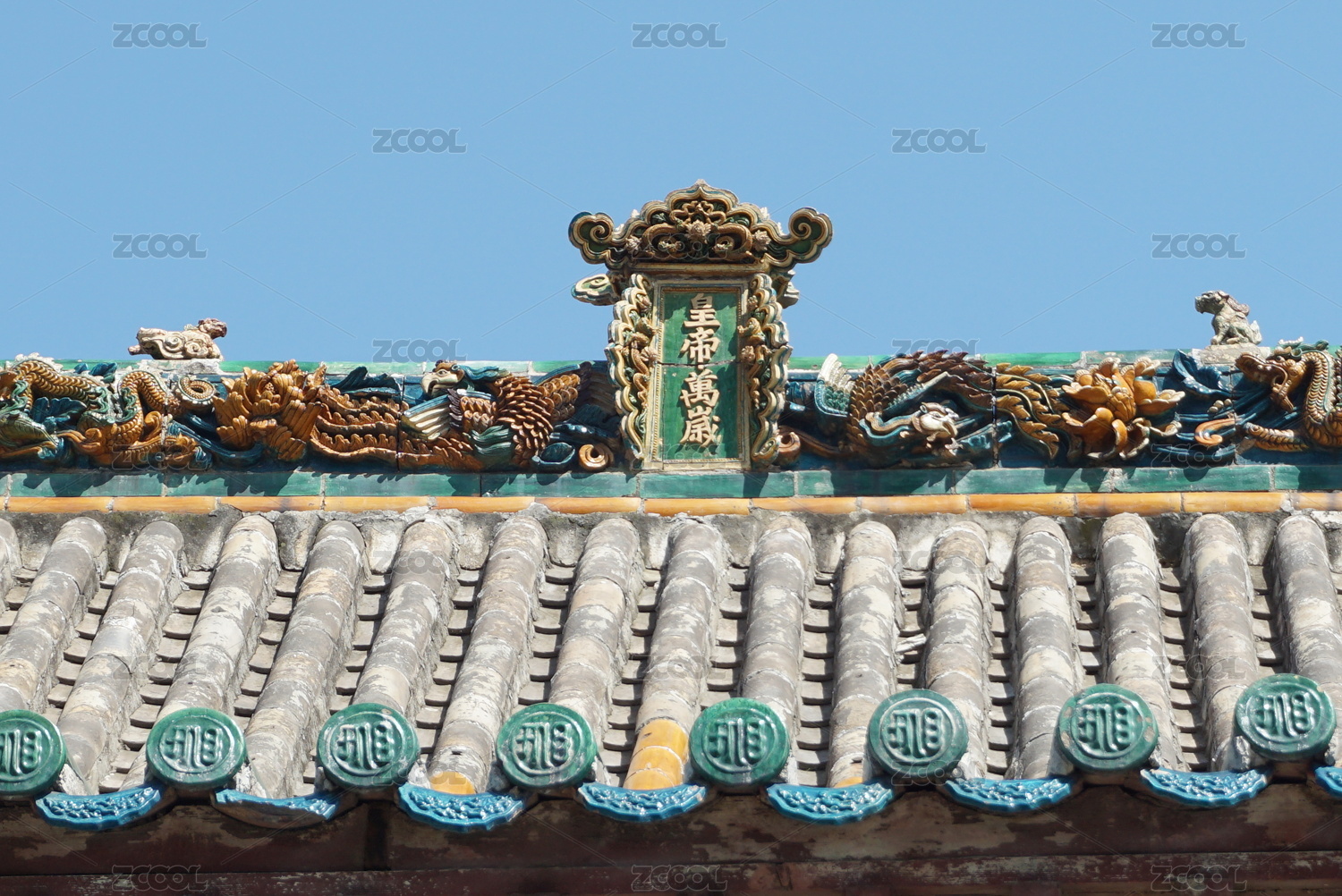 山西省朔州崇福寺弥陀殿古建筑屋顶琉璃脊饰