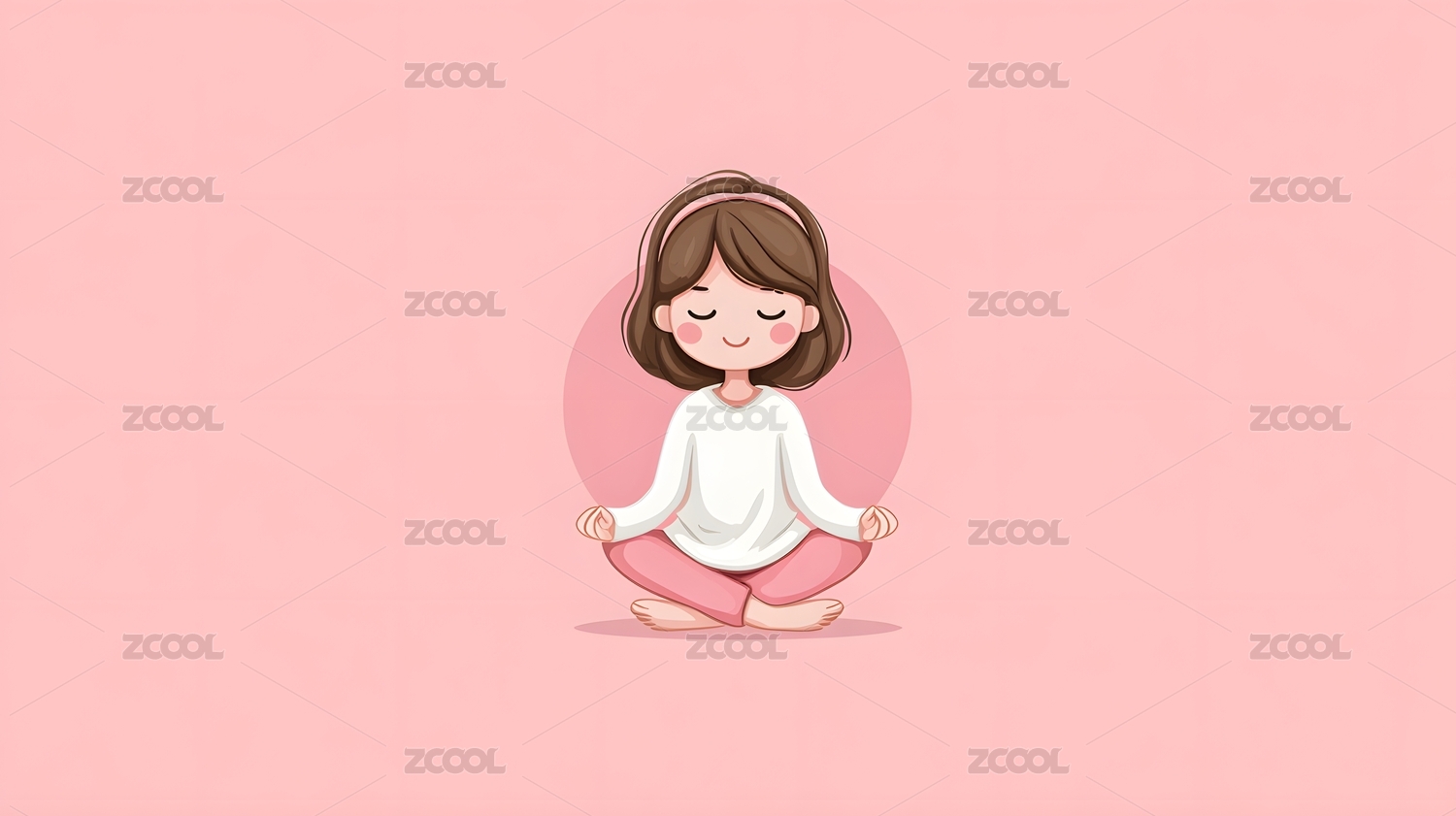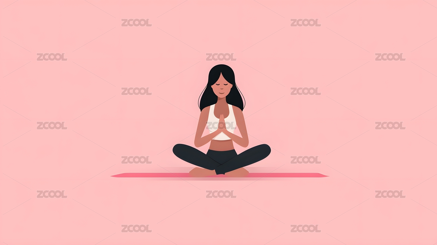 静坐,插画,女性,坐禅,冥想,静谧,绿色,禅意,运动,古朴