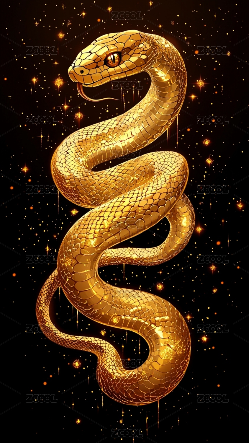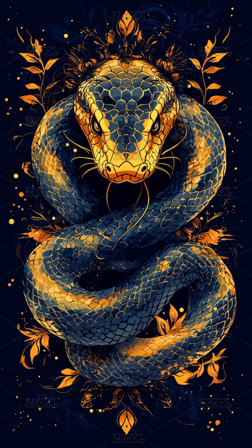 蛇年主题灵动缠绕的蛇壁纸插画艺术
