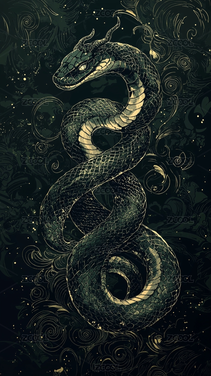 蛇壁纸,蛇插画,蛇精美壁纸,蛇高级感,竖版壁纸,手机壁纸,蛇海报图,蛇年精美图片,冒险,神秘