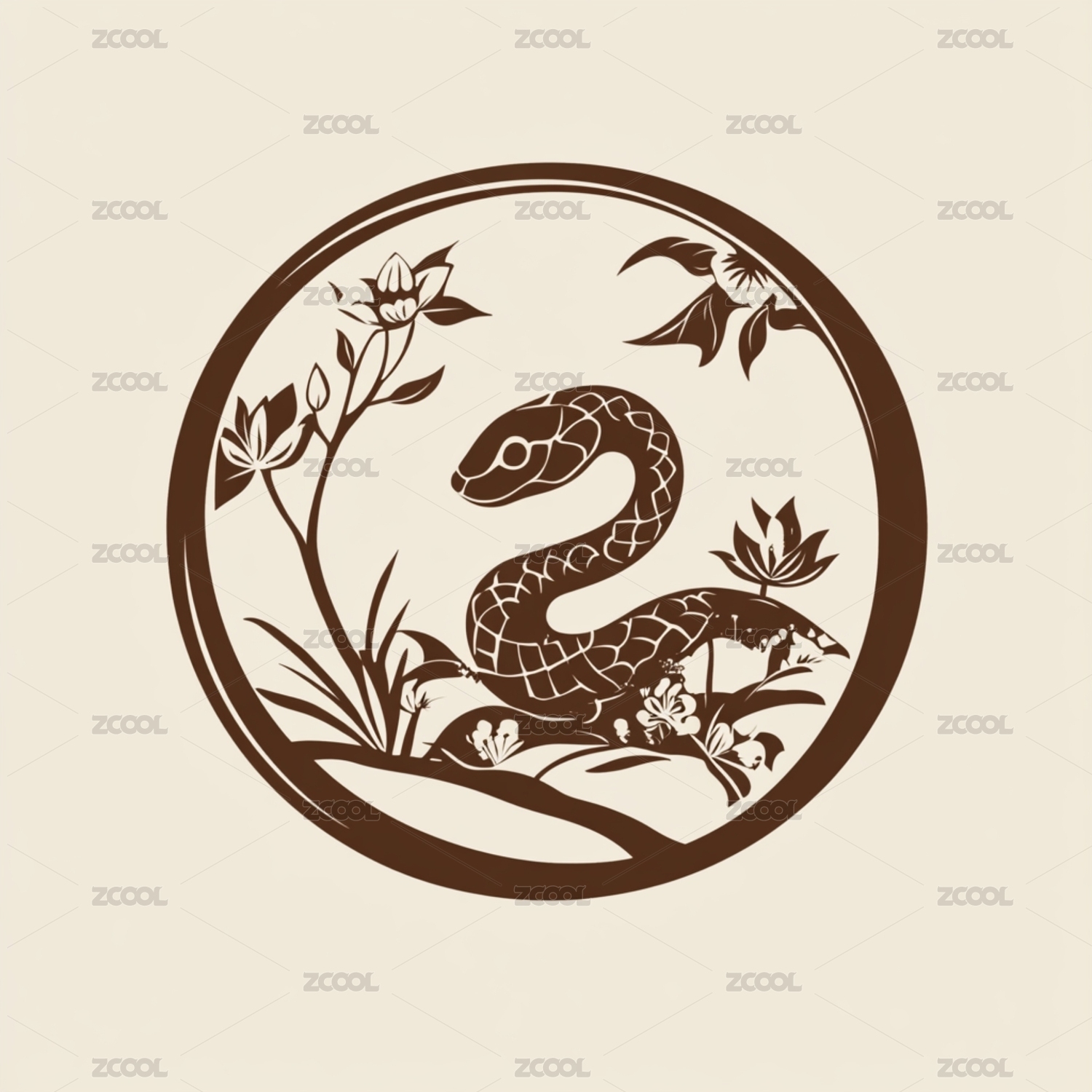蛇年主题插画艺术剪纸图案logo徽章标志