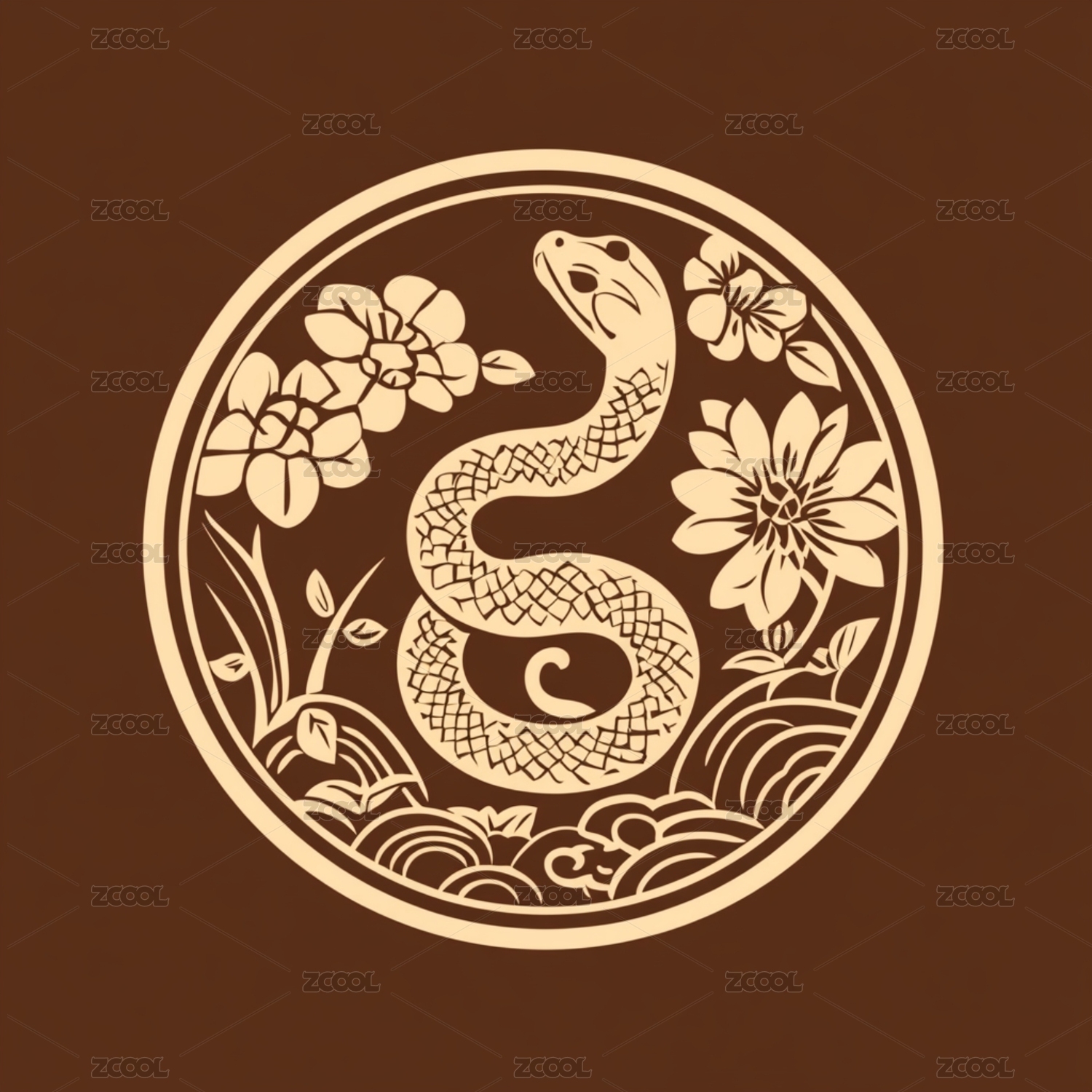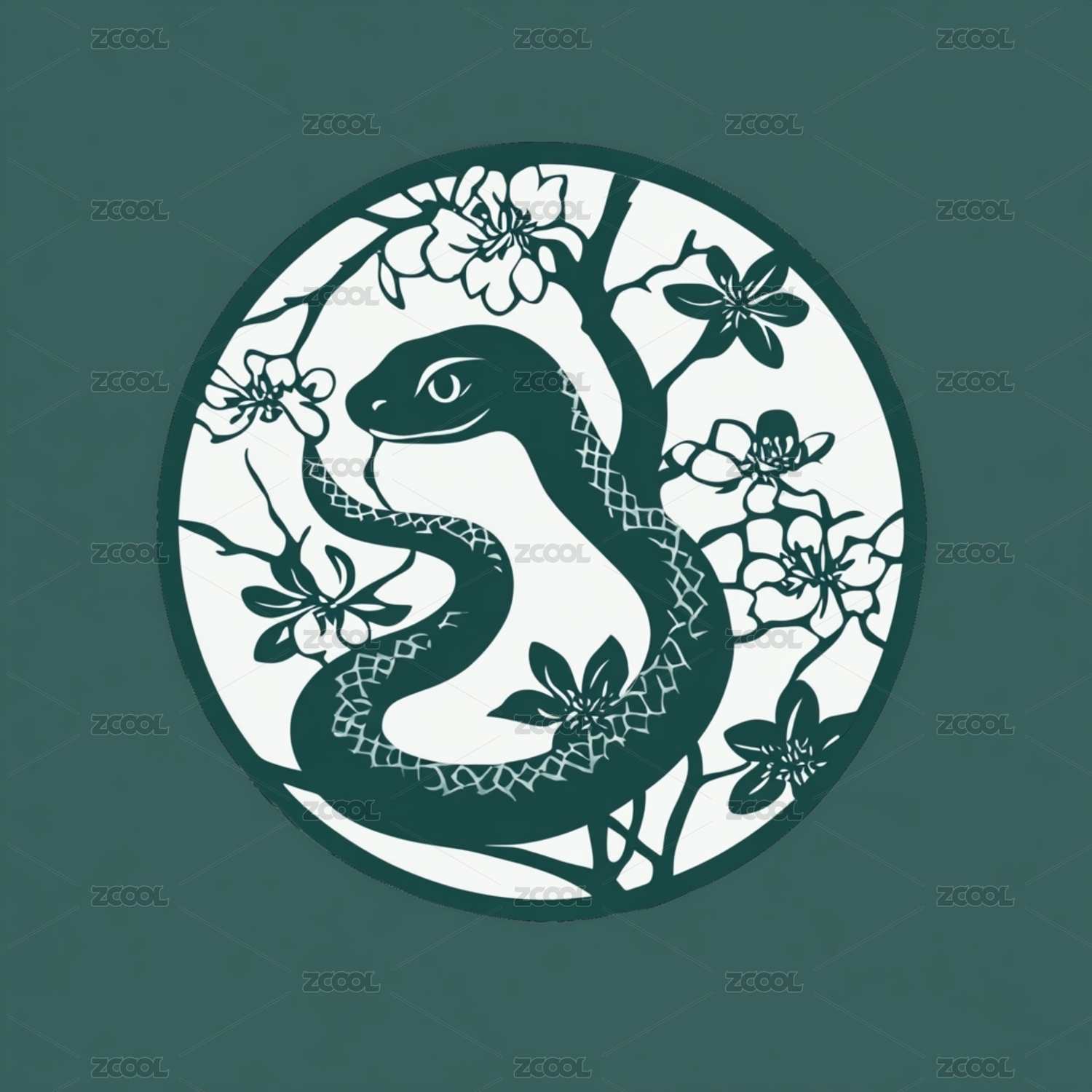 蛇,snake,蛇年主题,插画,艺术,剪纸,logo,徽章,窗花,标志