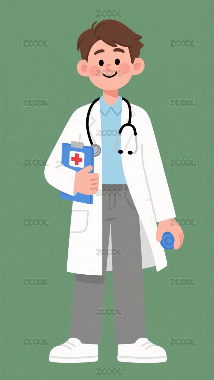 手持物品的卡通男医生形象