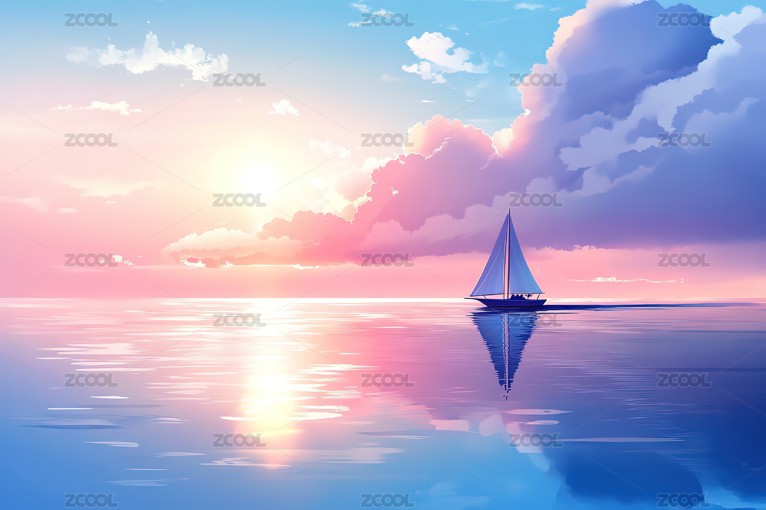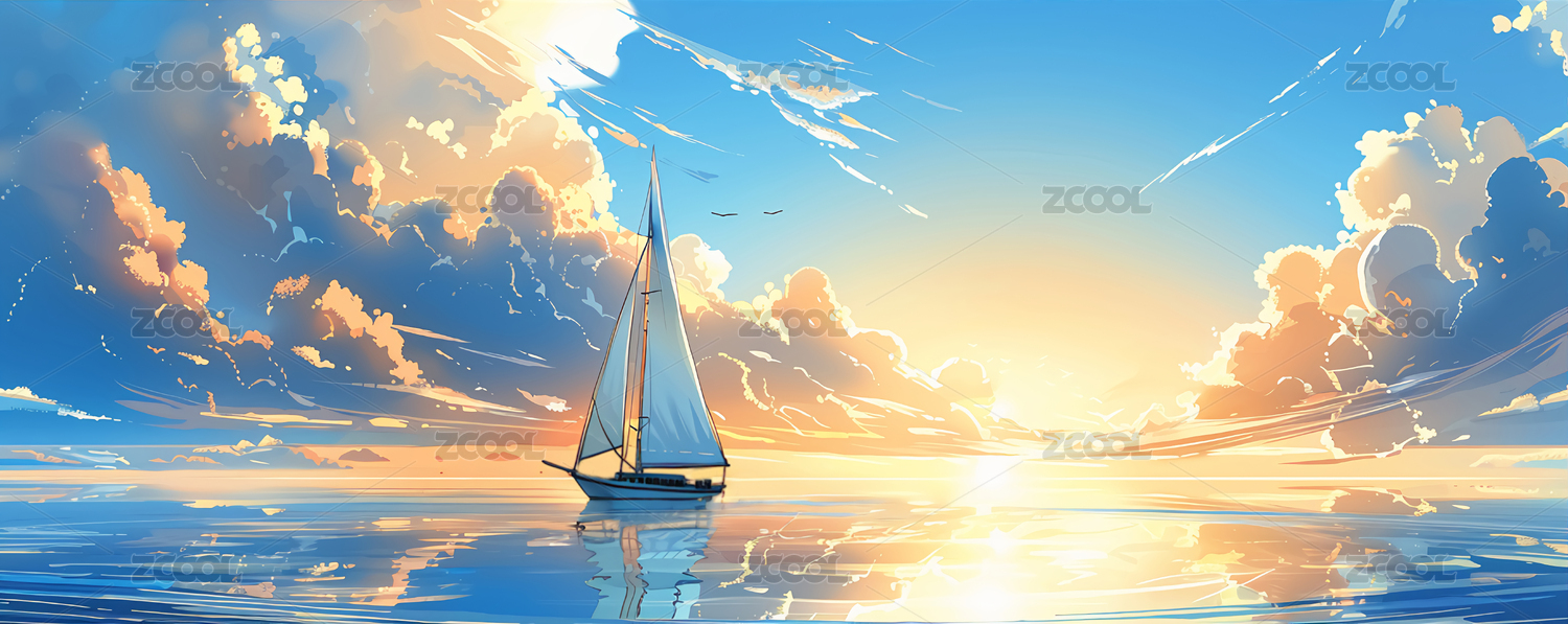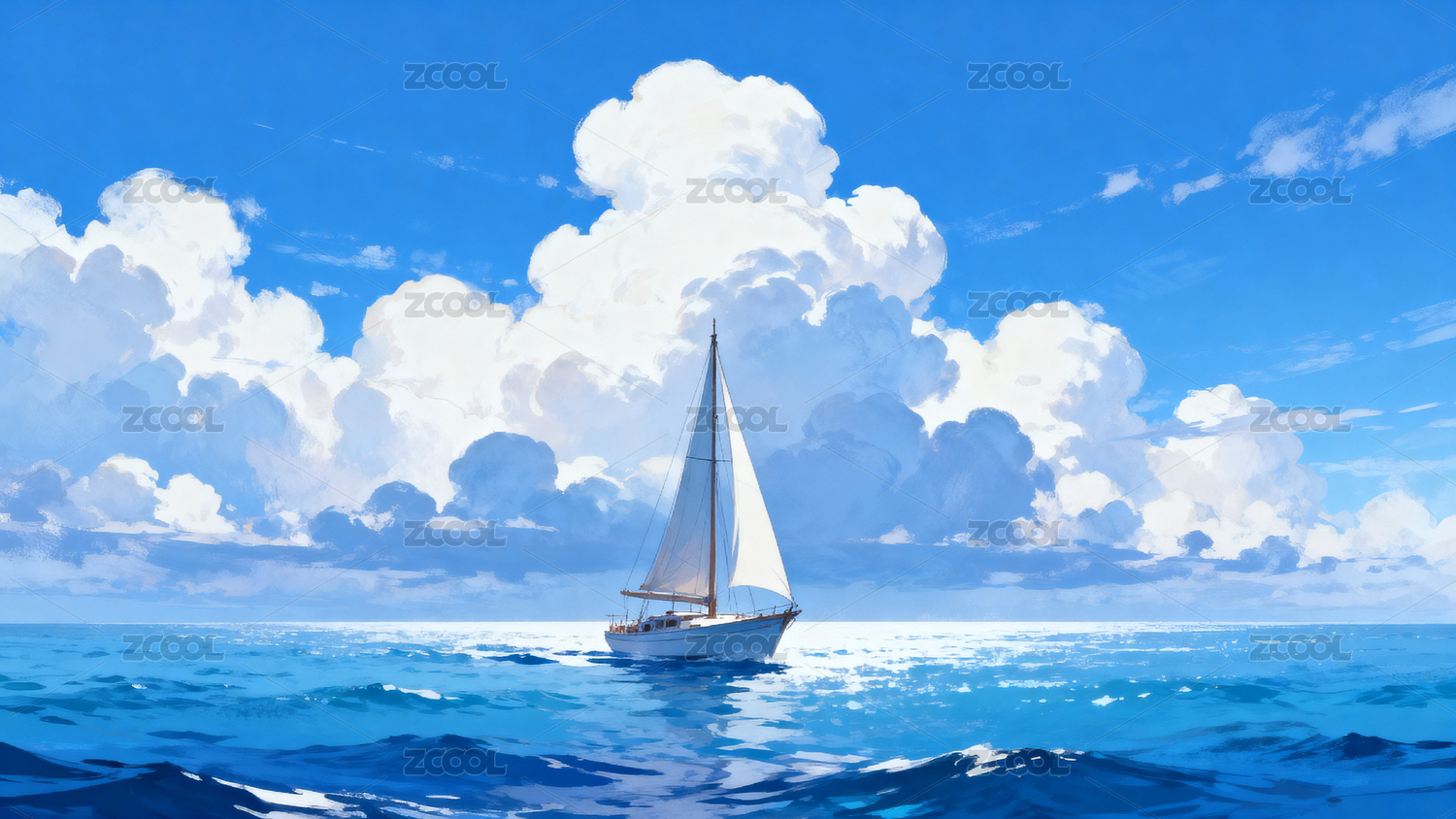 大海,海洋,行驶,船,帆船,天空,水,倒影,反射,光影