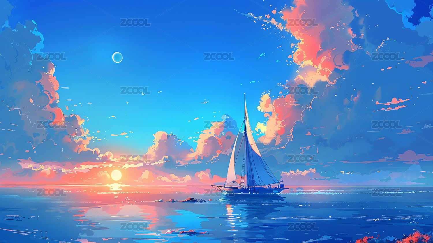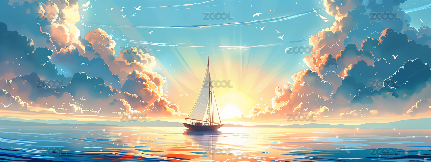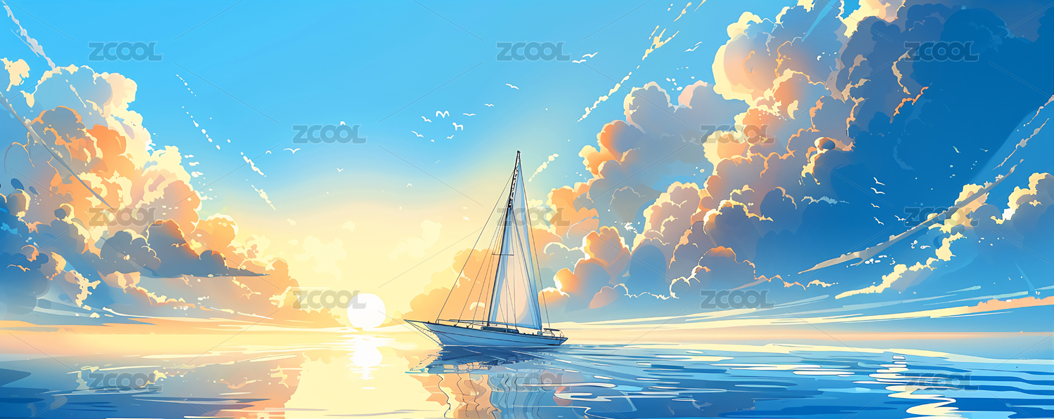大海,海洋,行驶,船,帆船,天空,水,倒影,反射,光影