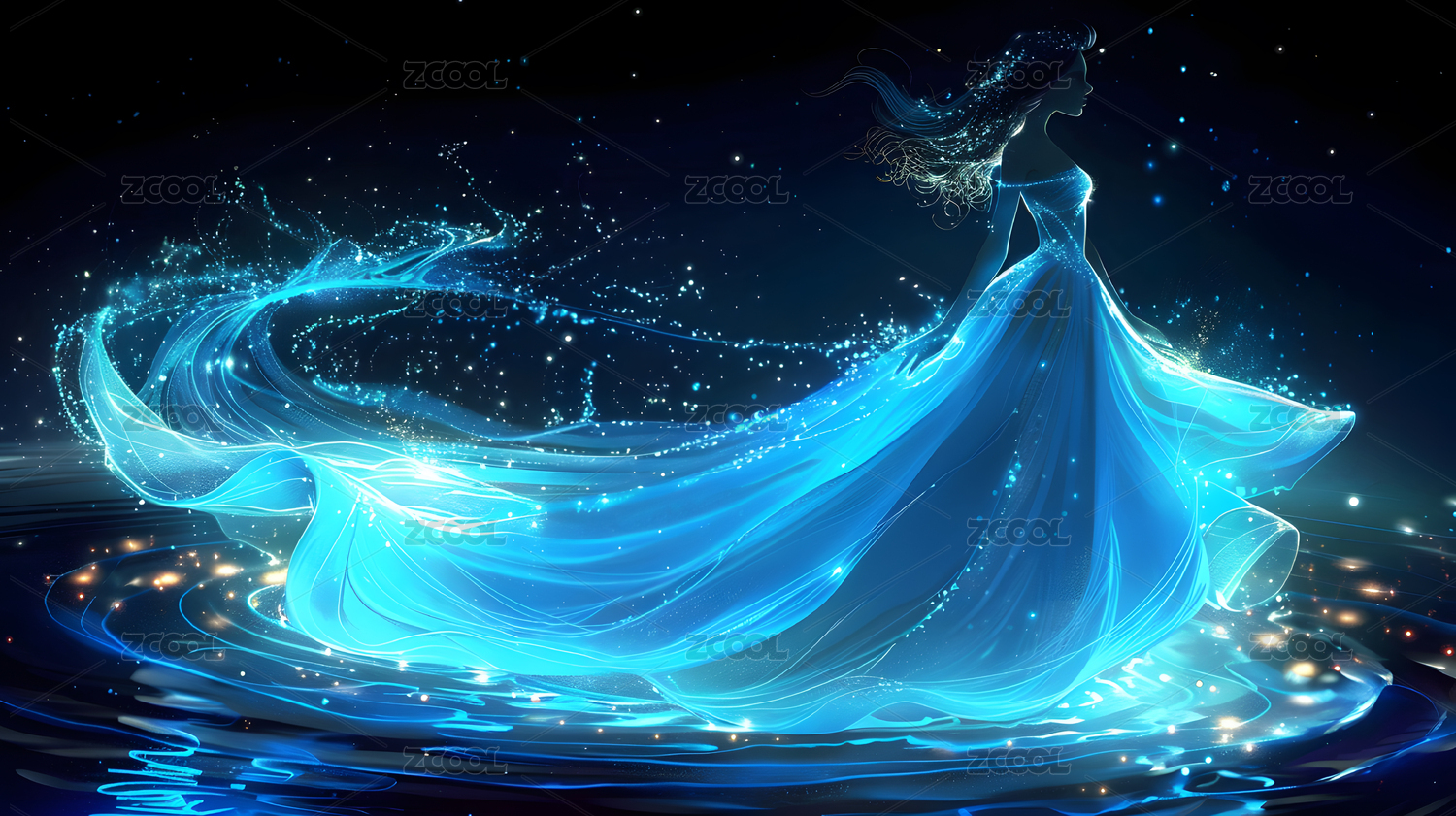 闪耀蓝光少女梦幻长裙