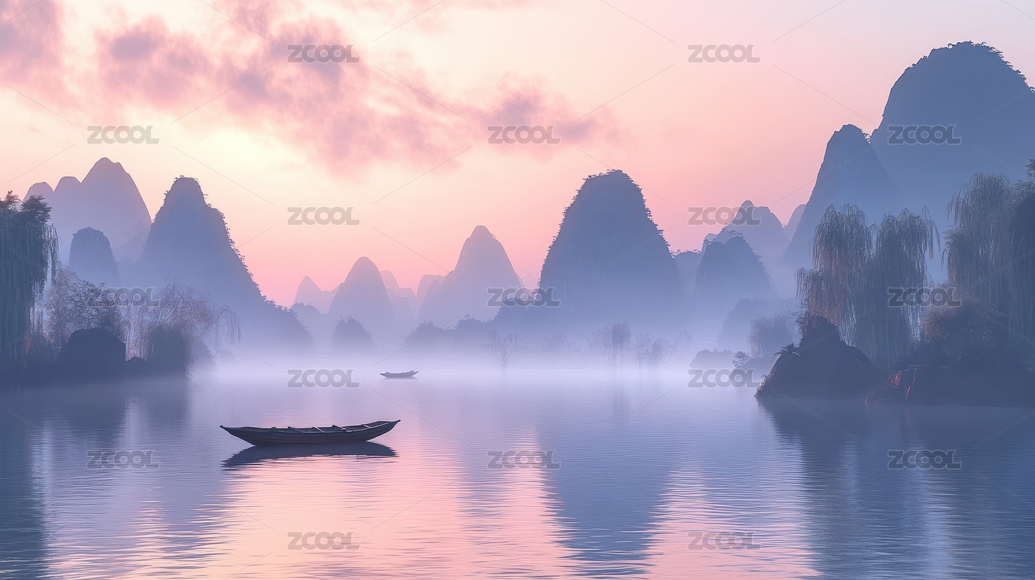 自然,山,水,山水,风景,湖泊,日出,黄昏
